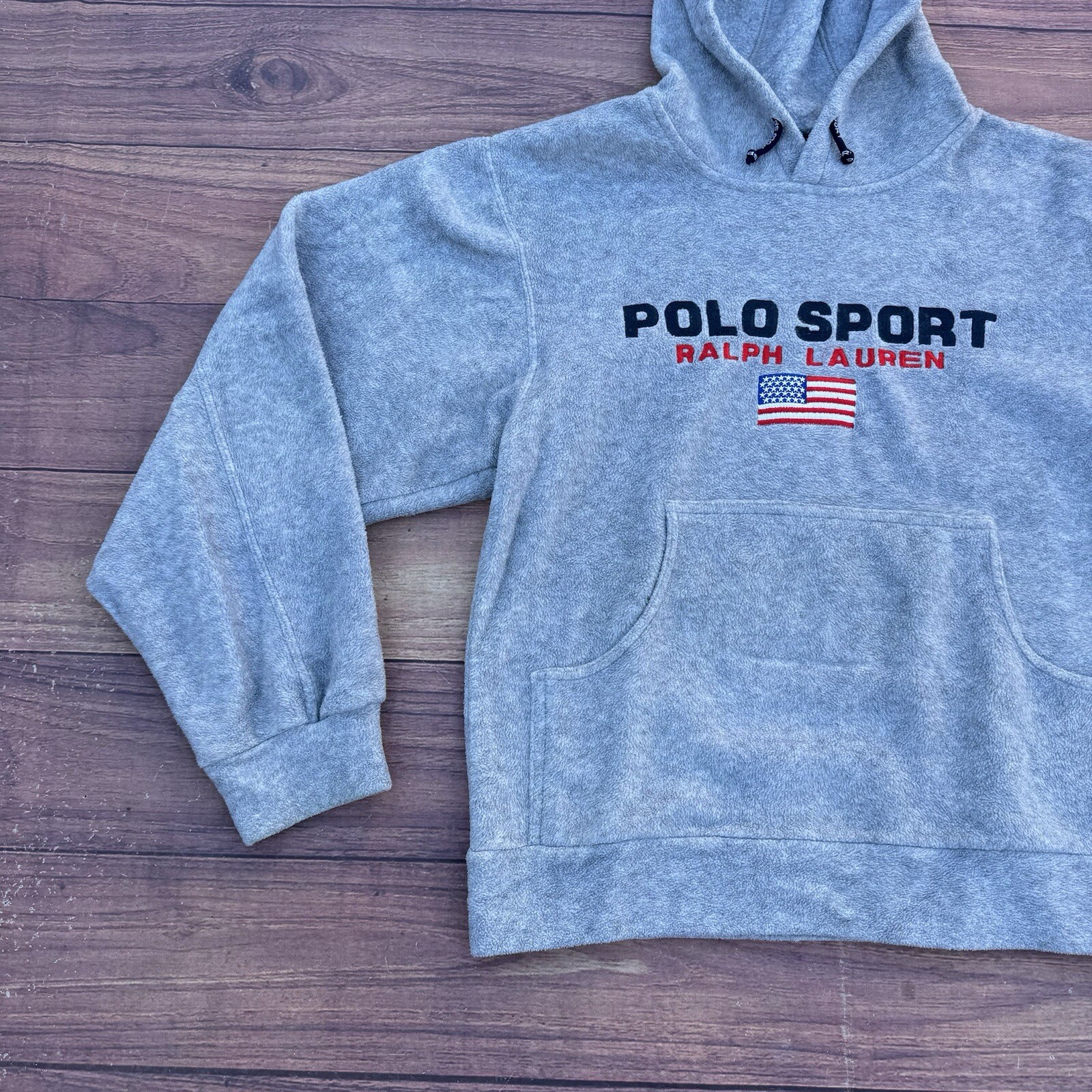 Vintage Polo Ralph Lauren Polo Sport Fleece Pullover Hoodie Gray 90s Spell Out