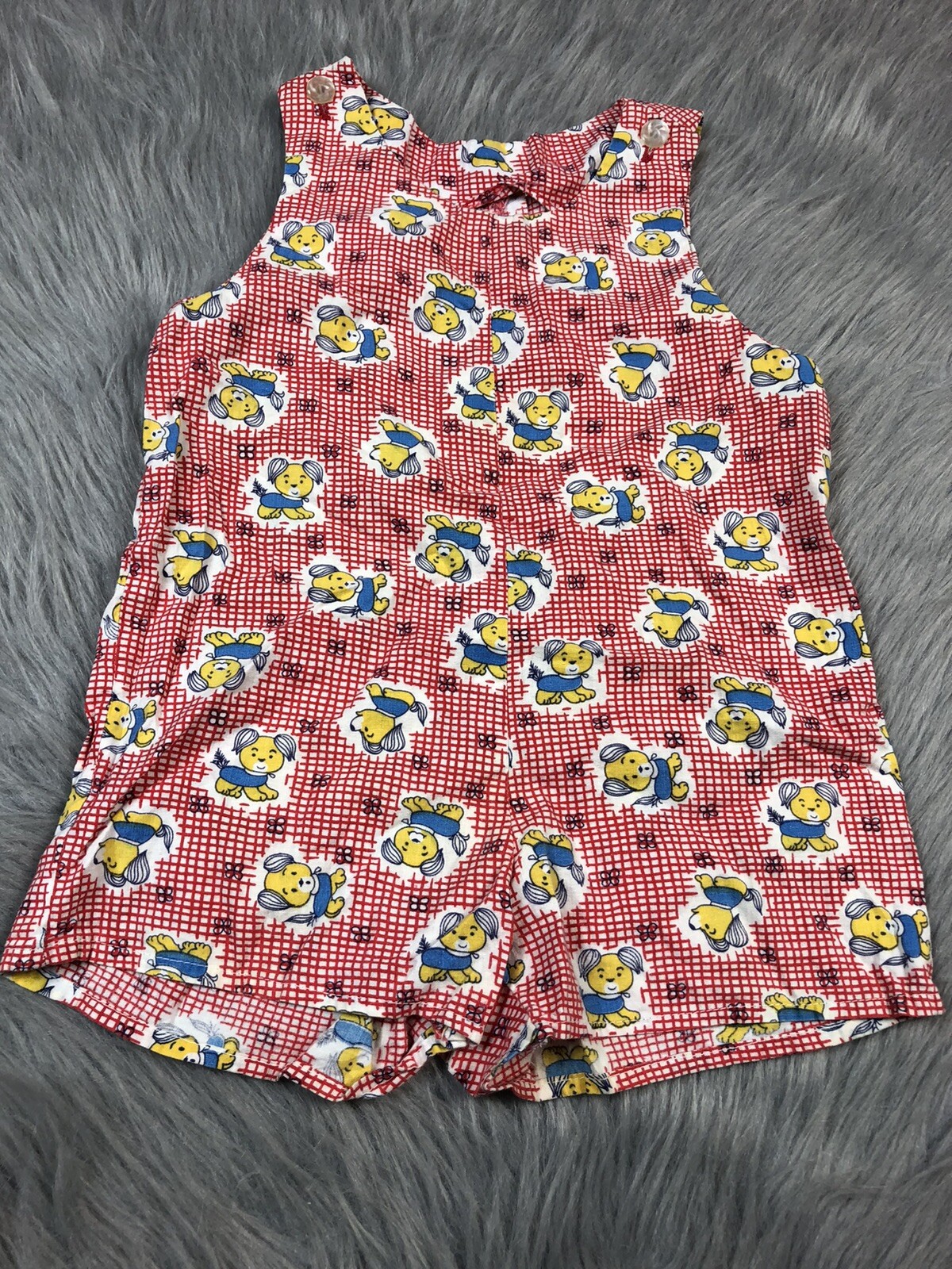Vintage Baby Toddler Red White Checkered Puppy Dog Floral Romper