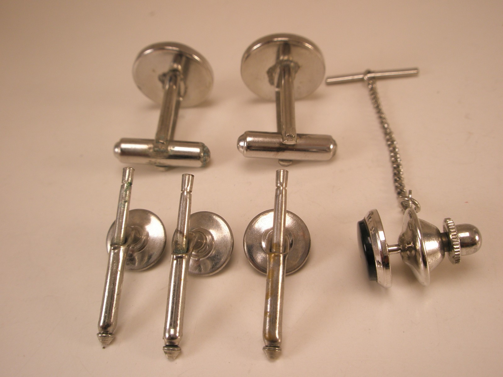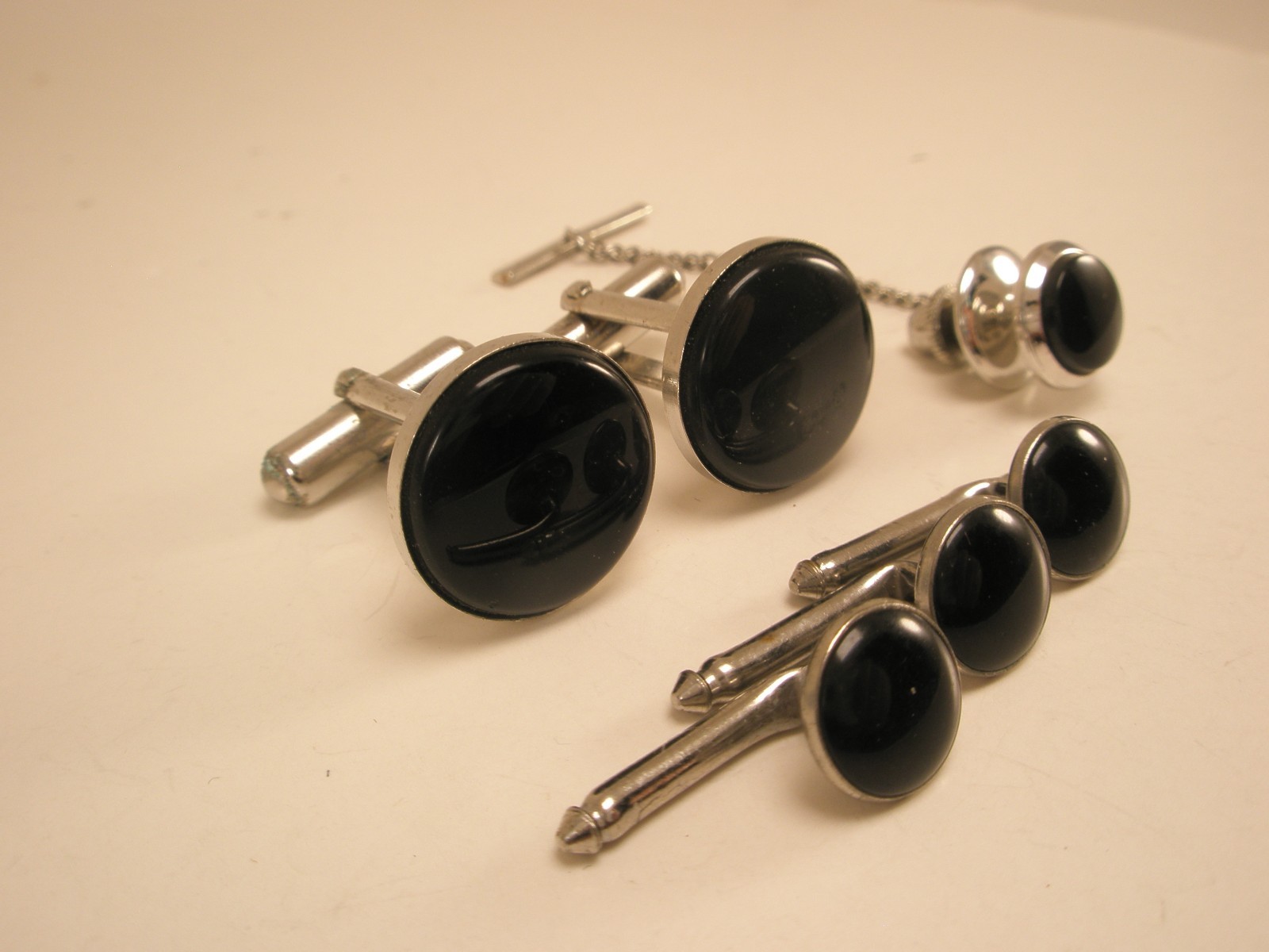 Round Black Silver Vintage Formal Cuff Links/Shirt Stud/Tie Tack prom tux p32