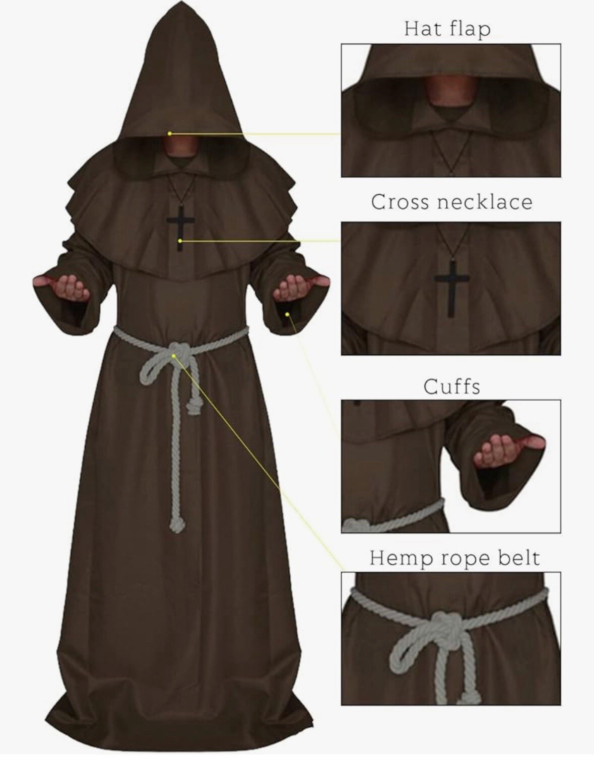 Medieval Monk Robe Priest Robe Halloween Costume Cosplay Cloak Adult XL