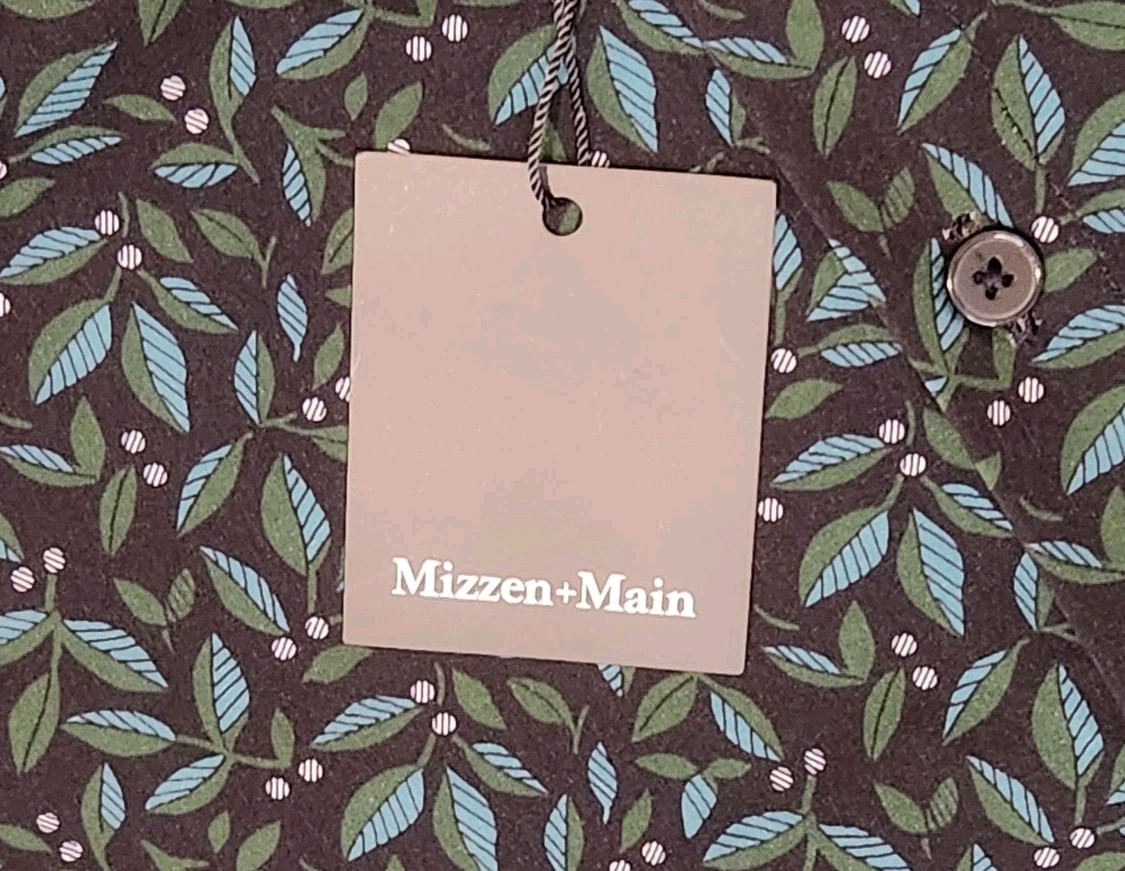 как выглядит Mizzen Main Leeward Navy Foliage Leaf Short Sleeve Dress Shirt New фото