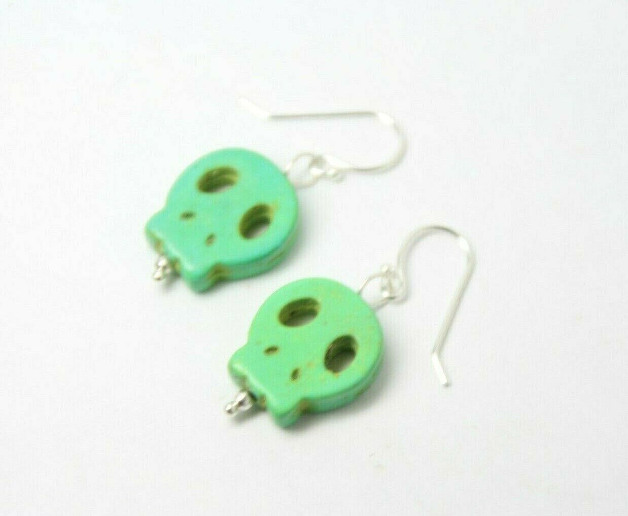Skull Earrings Green Skeleton Halloween .925 sterling silver Hooks Pins 1.25