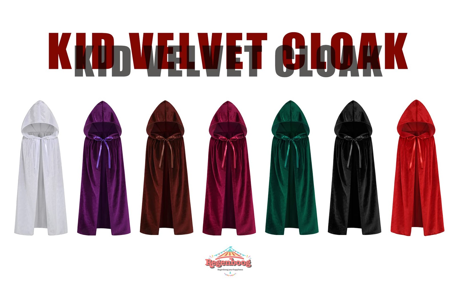 Kids Velvet Cape with Hood Halloween Costume Cloak for Child Christmas Party