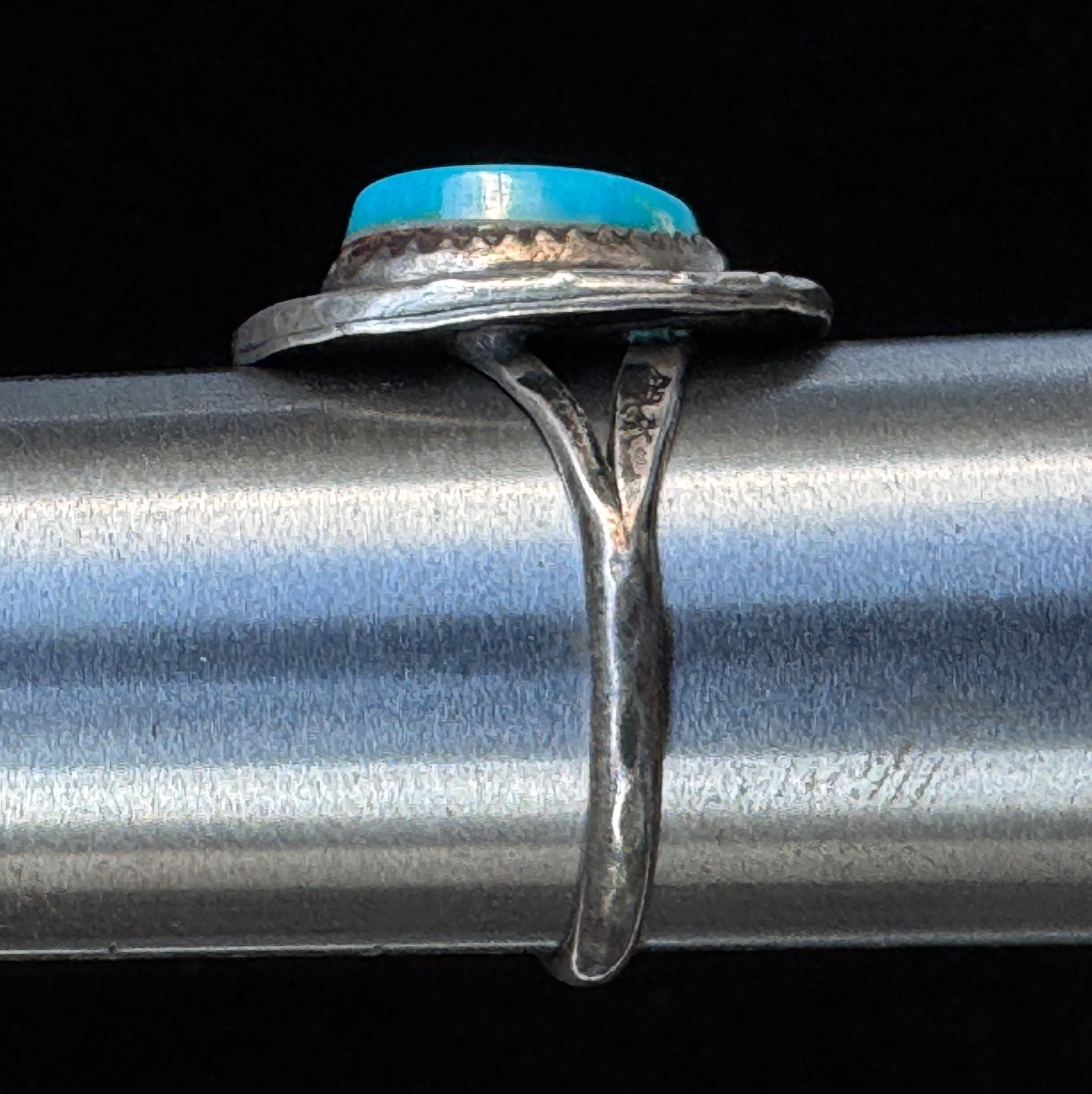 Navajo Leaf Sterling Silver Blue Turquoise Ring Size 8