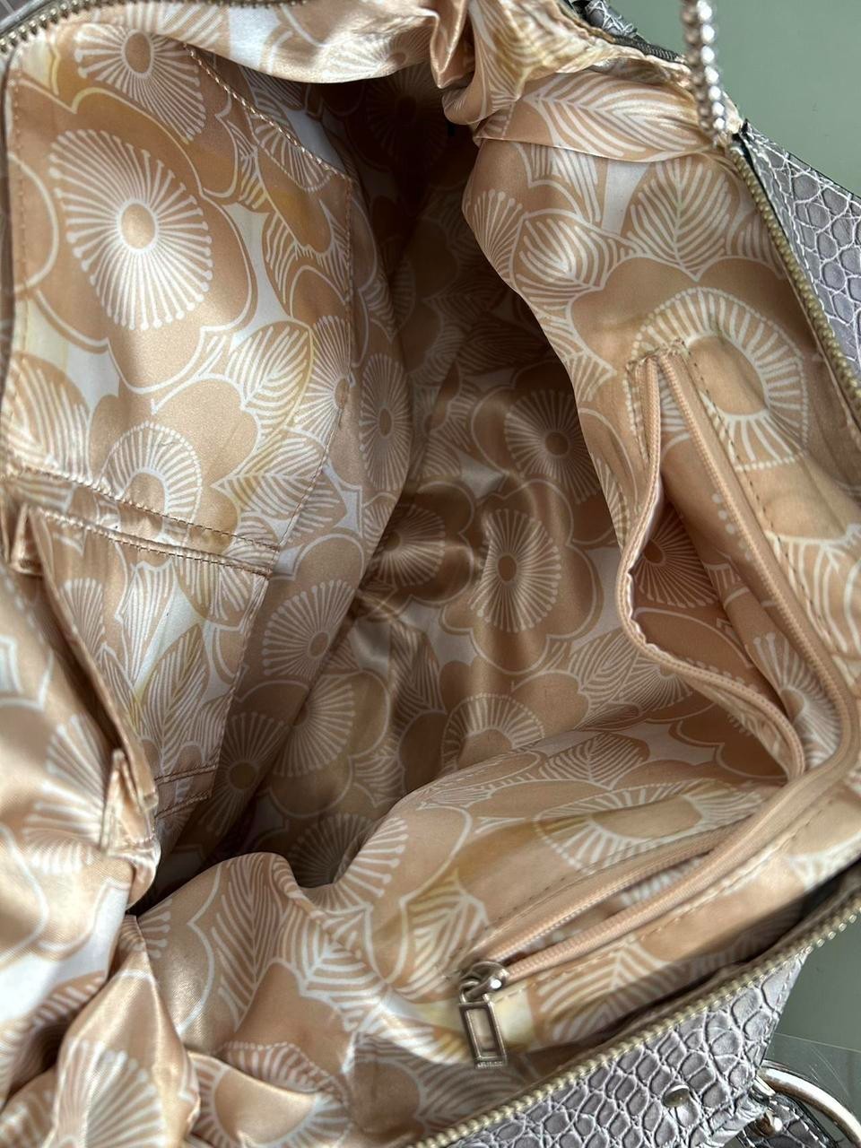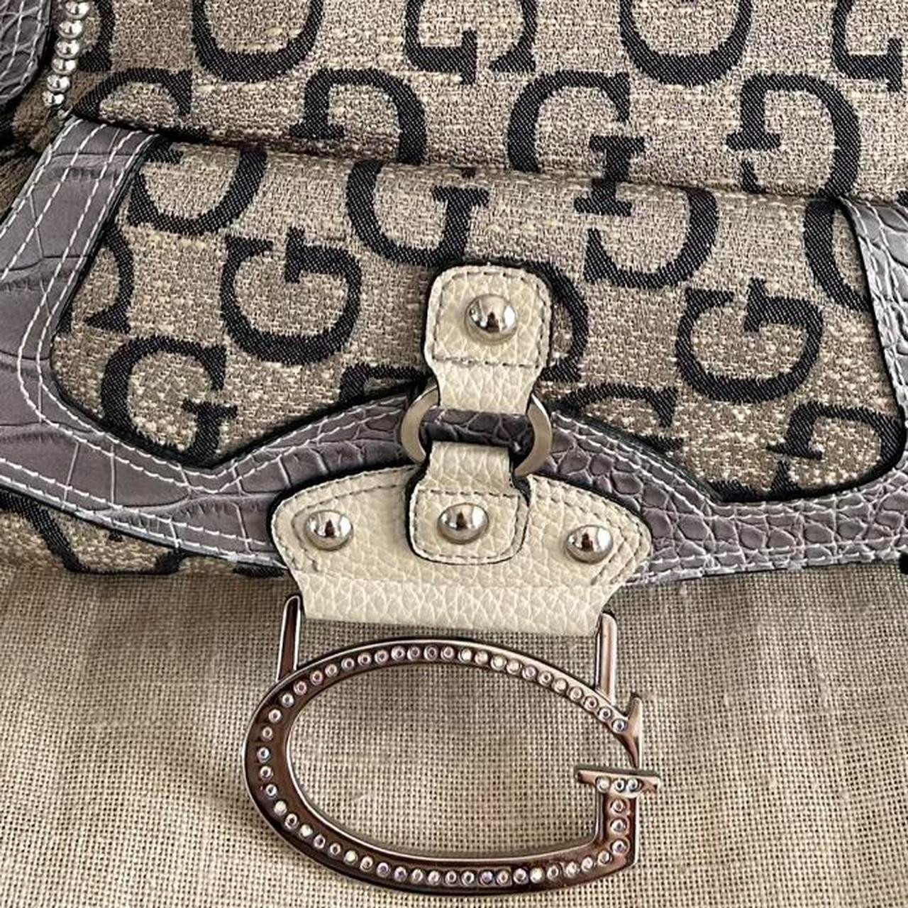 как выглядит Vintage Guess Monogram Satchel Bag Croc Trim Rhinestone G Logo Y2K Tote фото