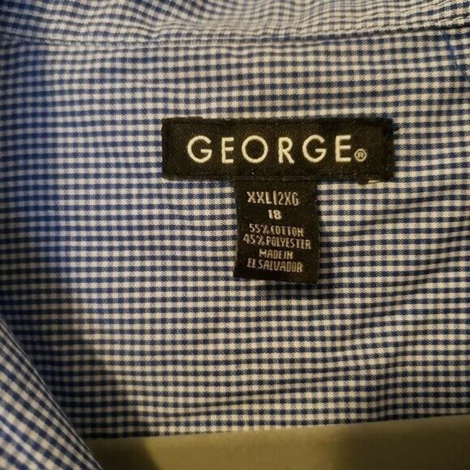 как выглядит George Mens Sz 18 Blue Checks Long Sleeve Dress Shirt фото