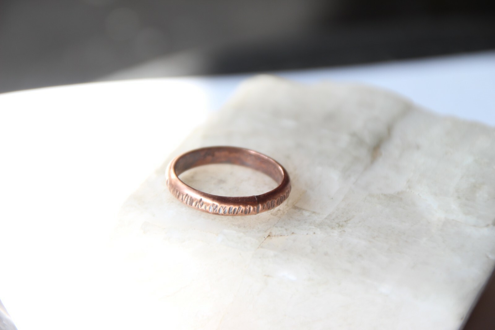 Copper Ring Stackable Hammered Rings band Size 6.5 Promise Ring Unisex 3mm width