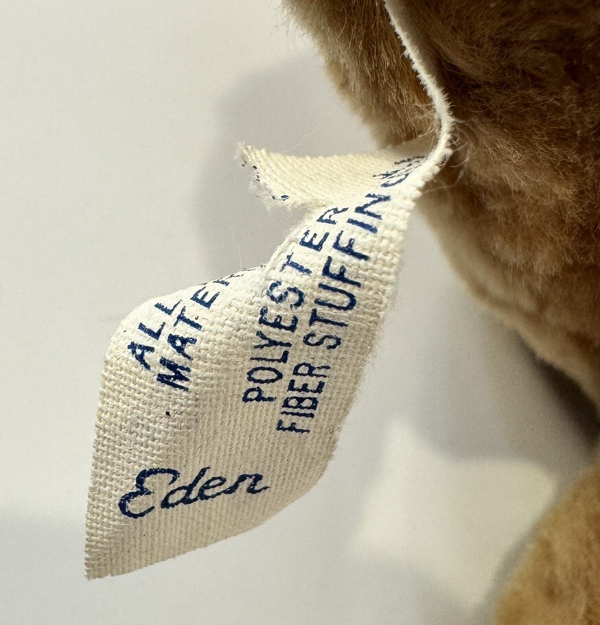 как выглядит Eden Teddy Bear Rattle Vintage Brown Plush 8 Stuffed Animal Toy Red Ribbon фото