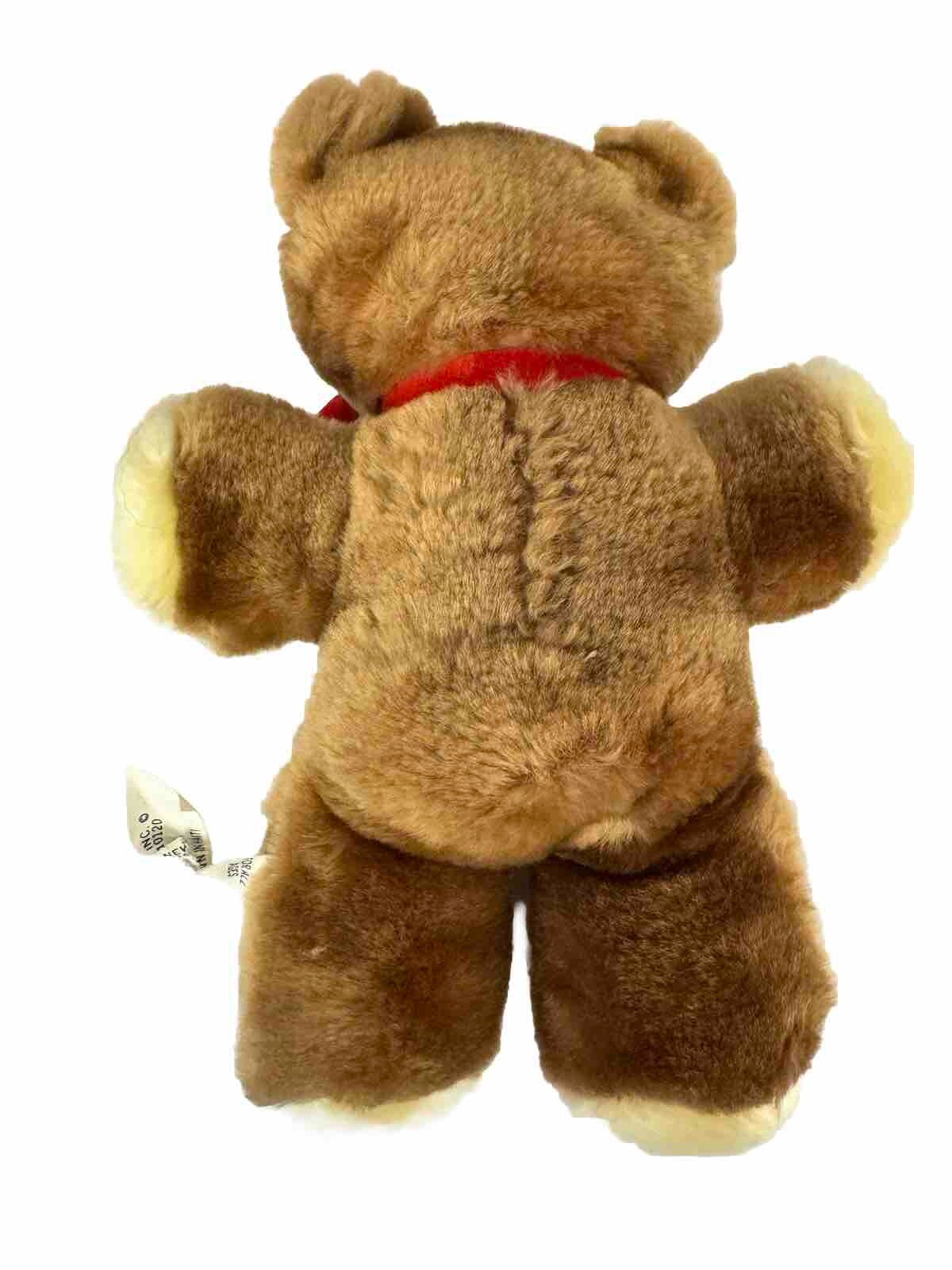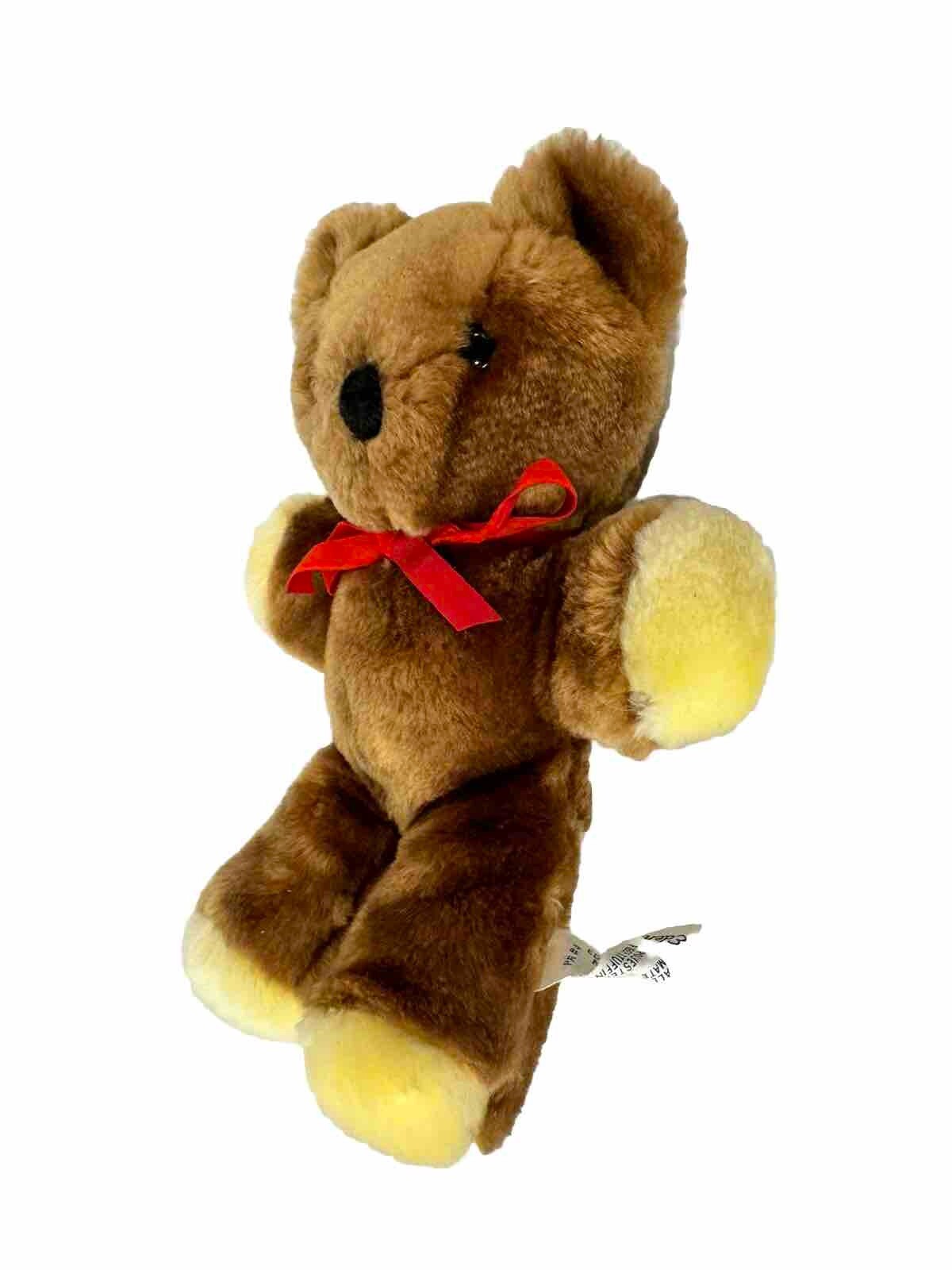 Eden Teddy Bear Rattle Vintage Brown Plush 8 Stuffed Animal Toy Red Ribbon