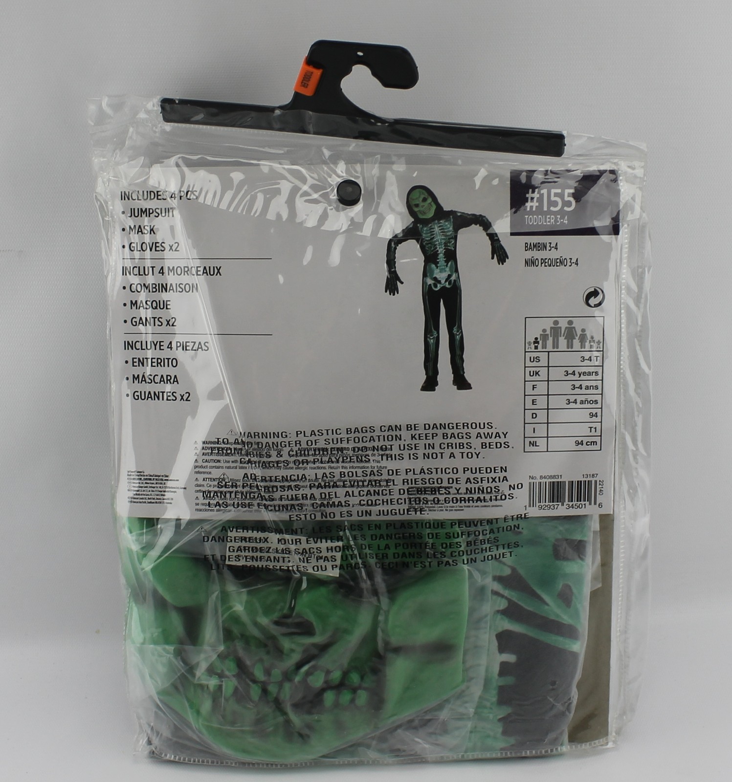 Skeleton Glow in the Dark Kids Toddler 3-4 Halloween Costume