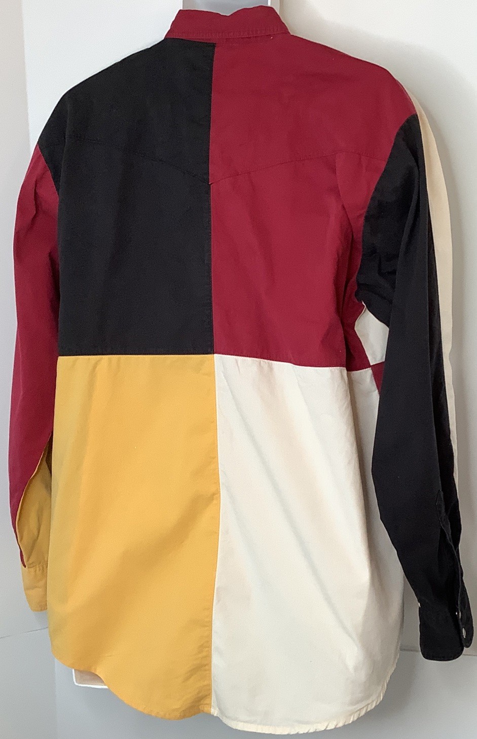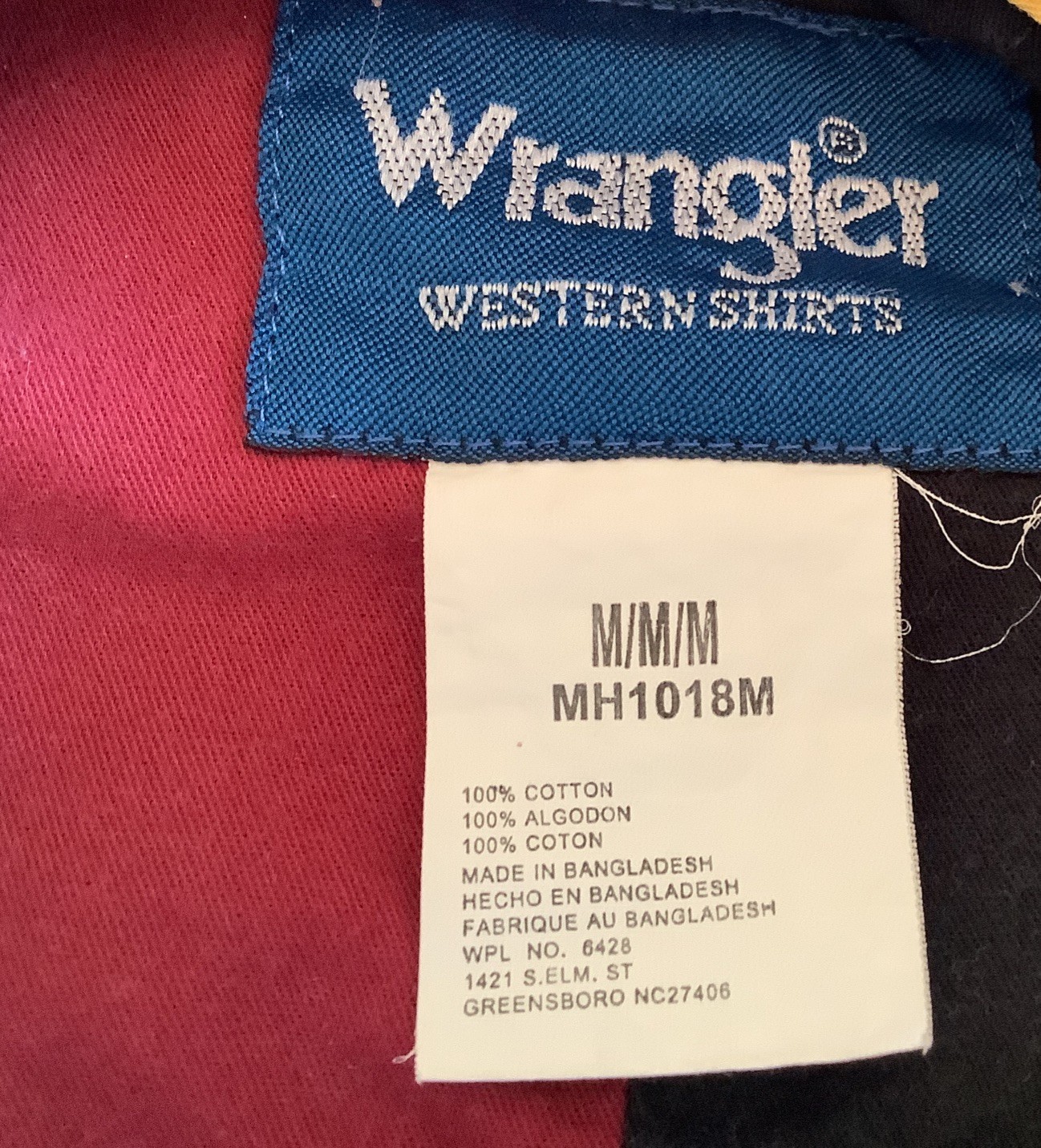 Vintage Wrangler Pearl Snap Button Up Shirt Size Medium M Color Block Western