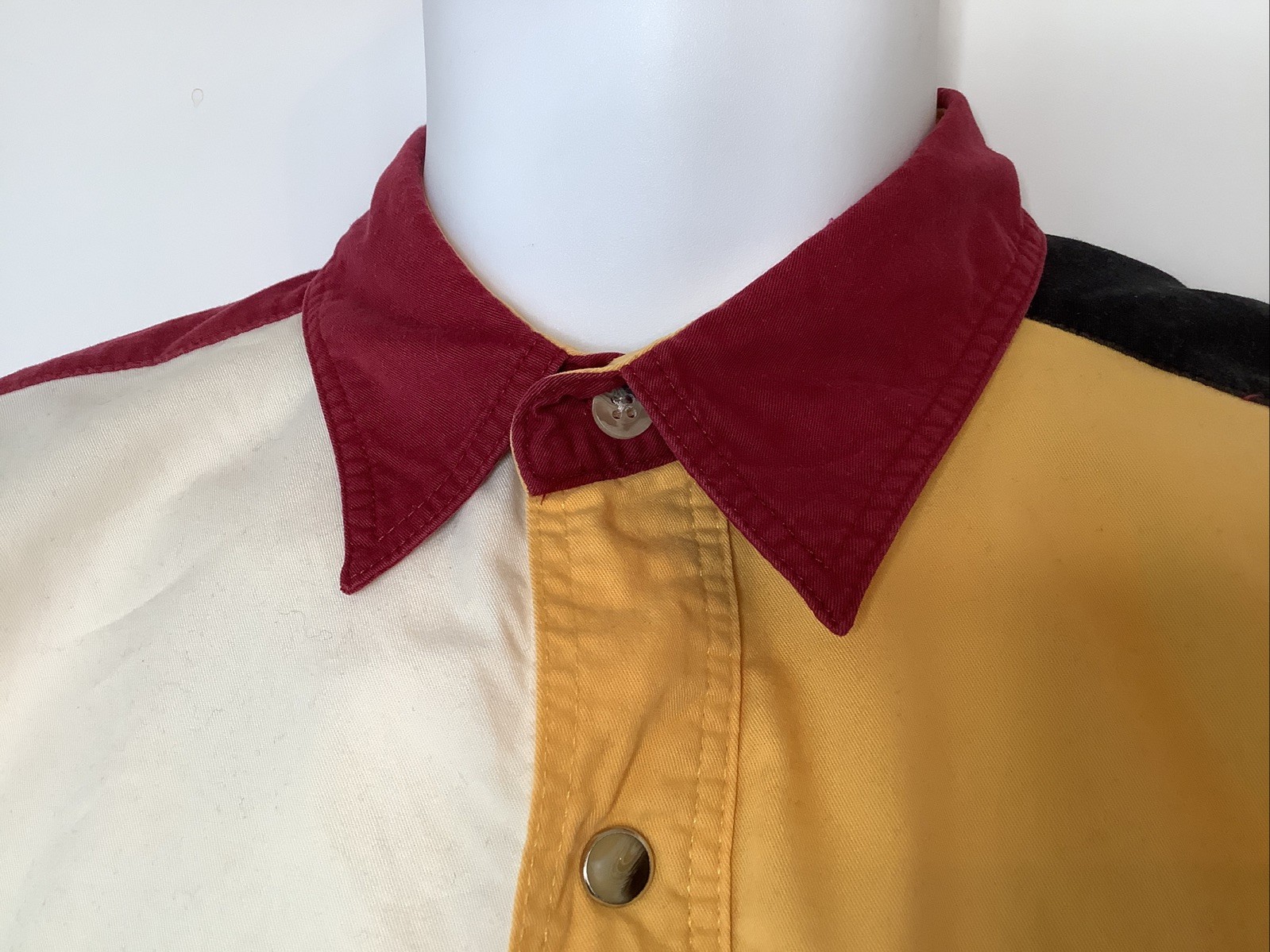 как выглядит Vintage Wrangler Pearl Snap Button Up Shirt Size Medium M Color Block Western фото