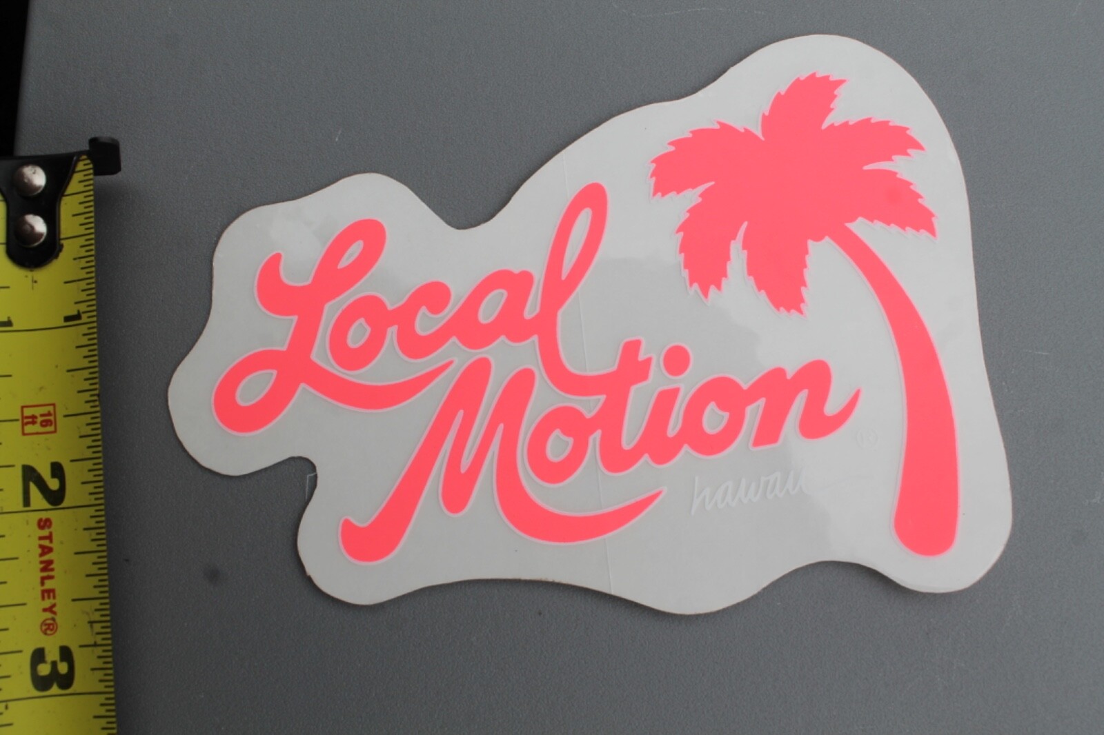 как выглядит LOCAL MOTION Hawaii Surfboards Clear Neon Pink 80s LM2 Vintage Surfing STICKER фото