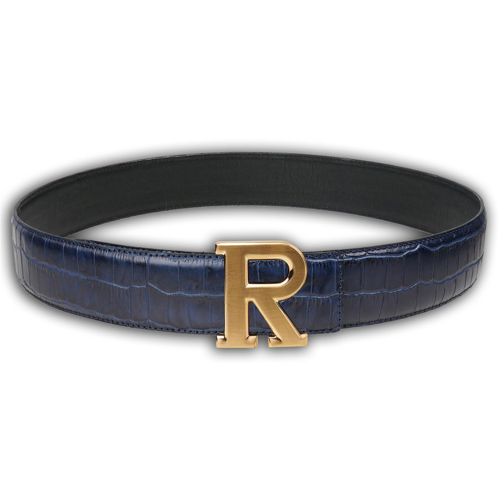 Leather belt reversible belt in croco navy with belt buckle 40mm H belt gold