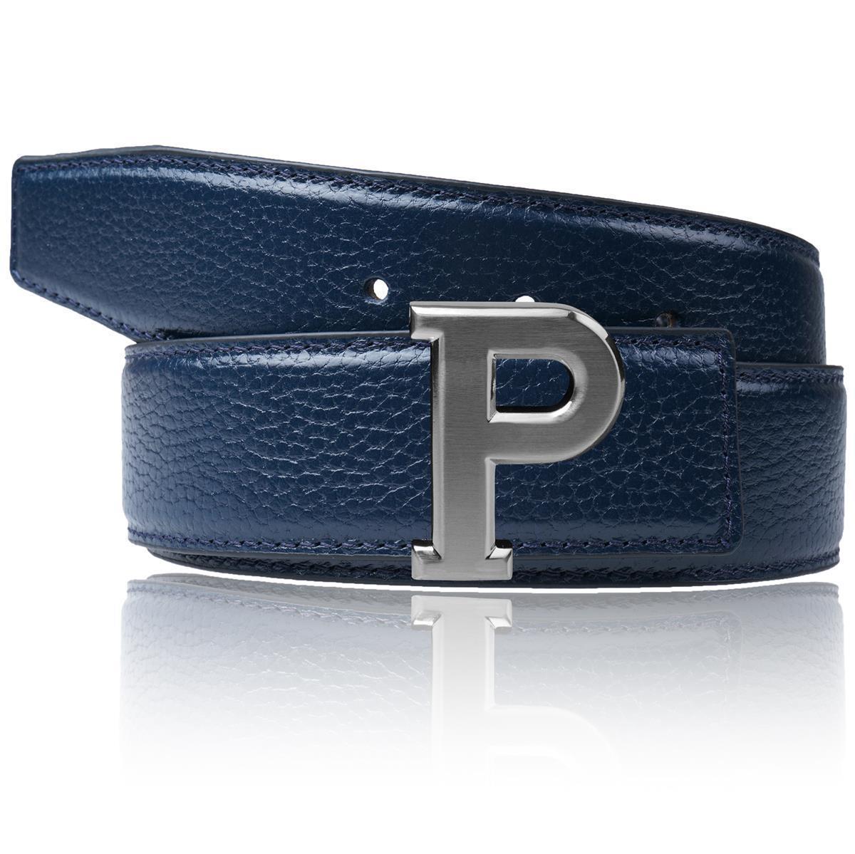 Leather belt reversible belt in dark blue with belt buckle 40mm H belt Silver