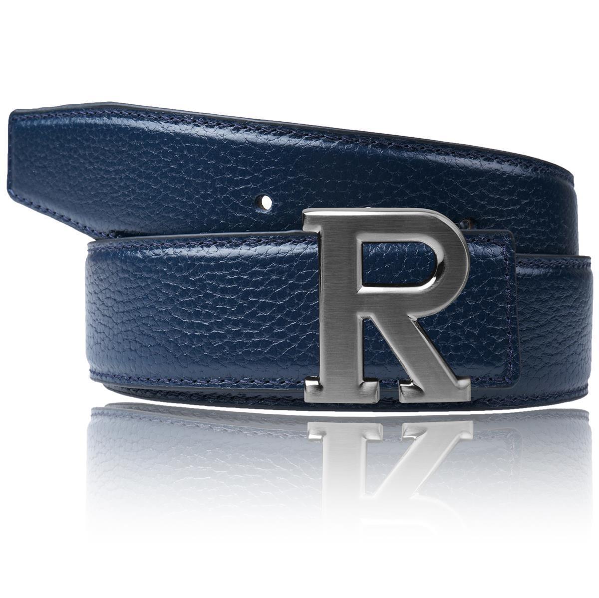 Leather belt reversible belt in dark blue with belt buckle 40mm H belt Silver