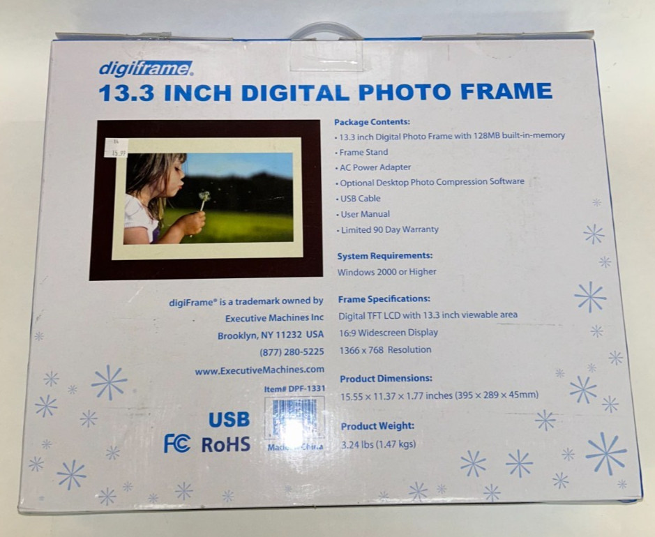 DigiFrame 13.3 Digital Photo Frame Espresso Wood LCD USB HDMI Tested