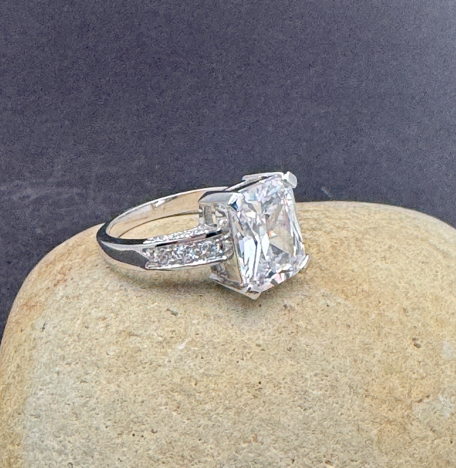 CUBIC ZIRCONIA RING set in .925 FINE STERLING SILVER Size 9 FREE FAST SHIPPING