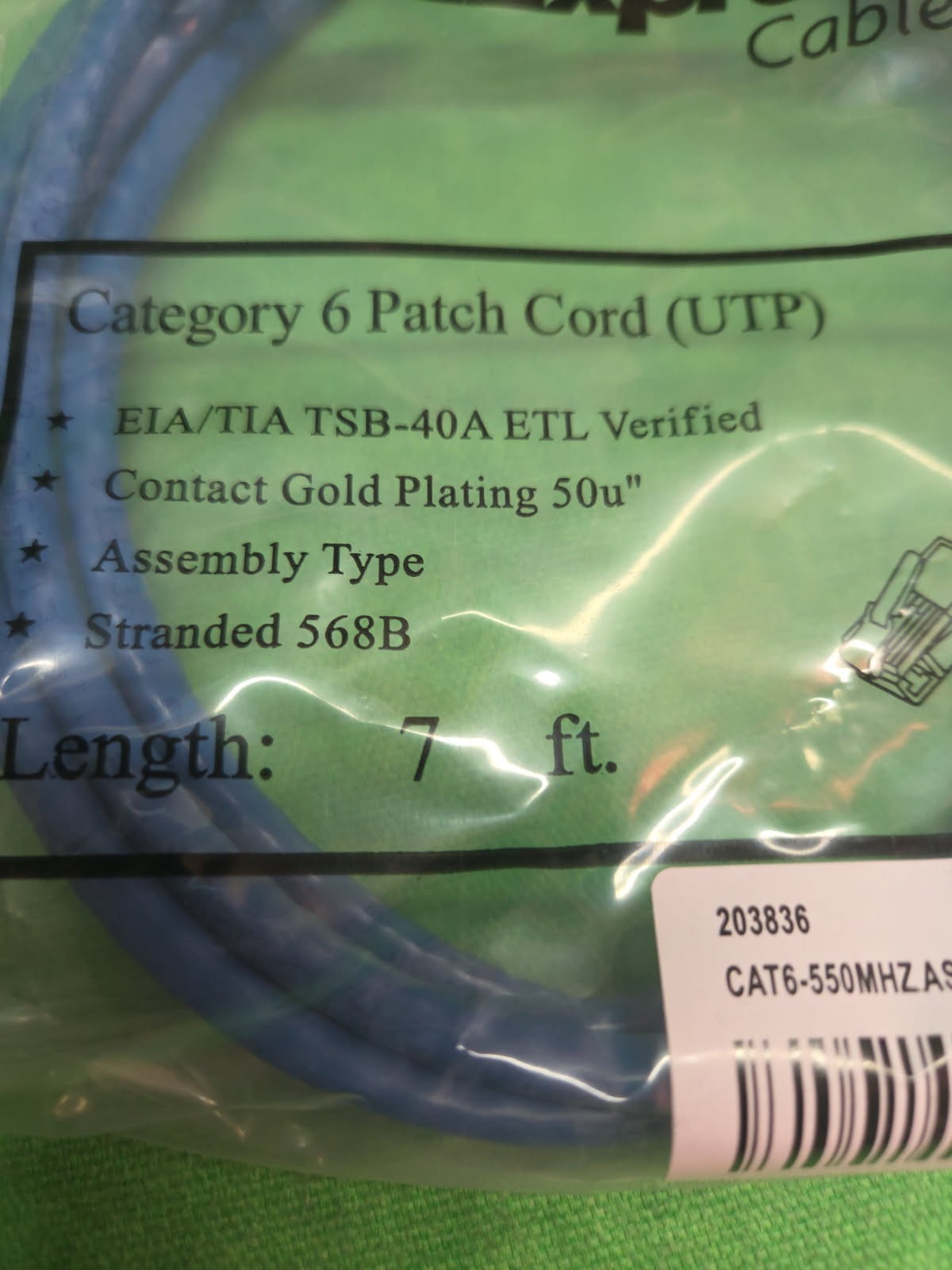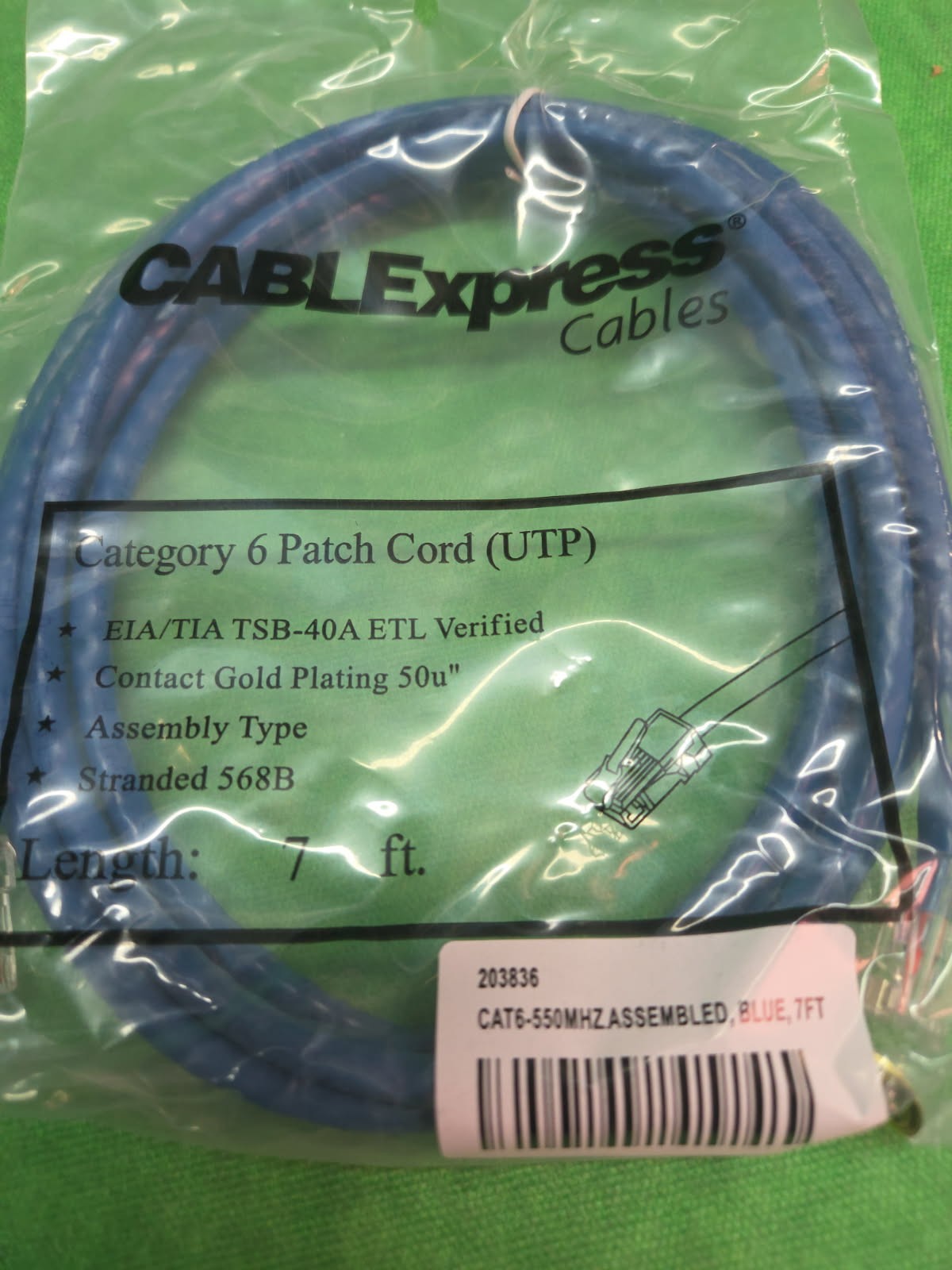 CAT 6 UTP Blue Patch Cable 23AWG 550MHz RJ45 Network 7 feet NEW LOT 10 PCS