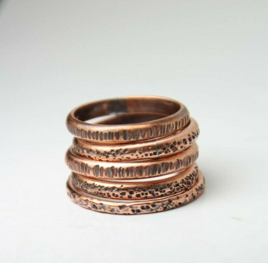 как выглядит Copper Ring Stackable Hammered Rings band Size 9.5 Promise Ring Unisex 3mm width фото