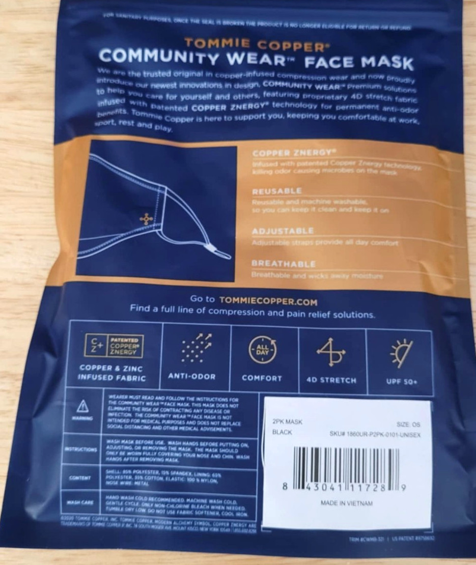 как выглядит Tommie Copper Community Wear Face Mask set of 2 Black Mask фото