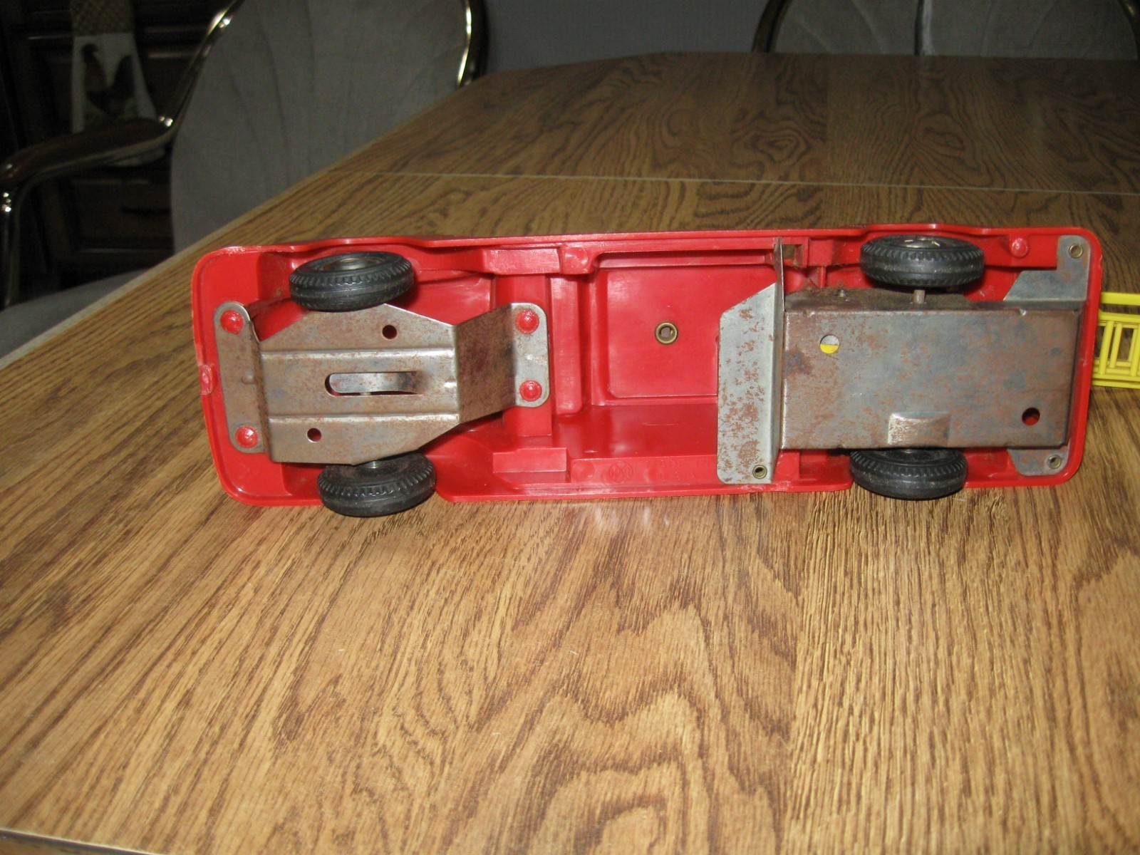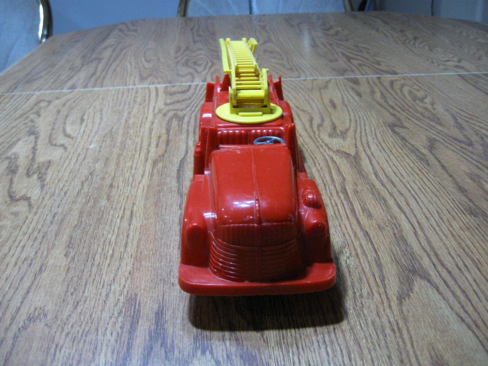 как выглядит Vintage 1950s Lewis Marx Friction Plastic Fire Truck with rubber wheels. фото