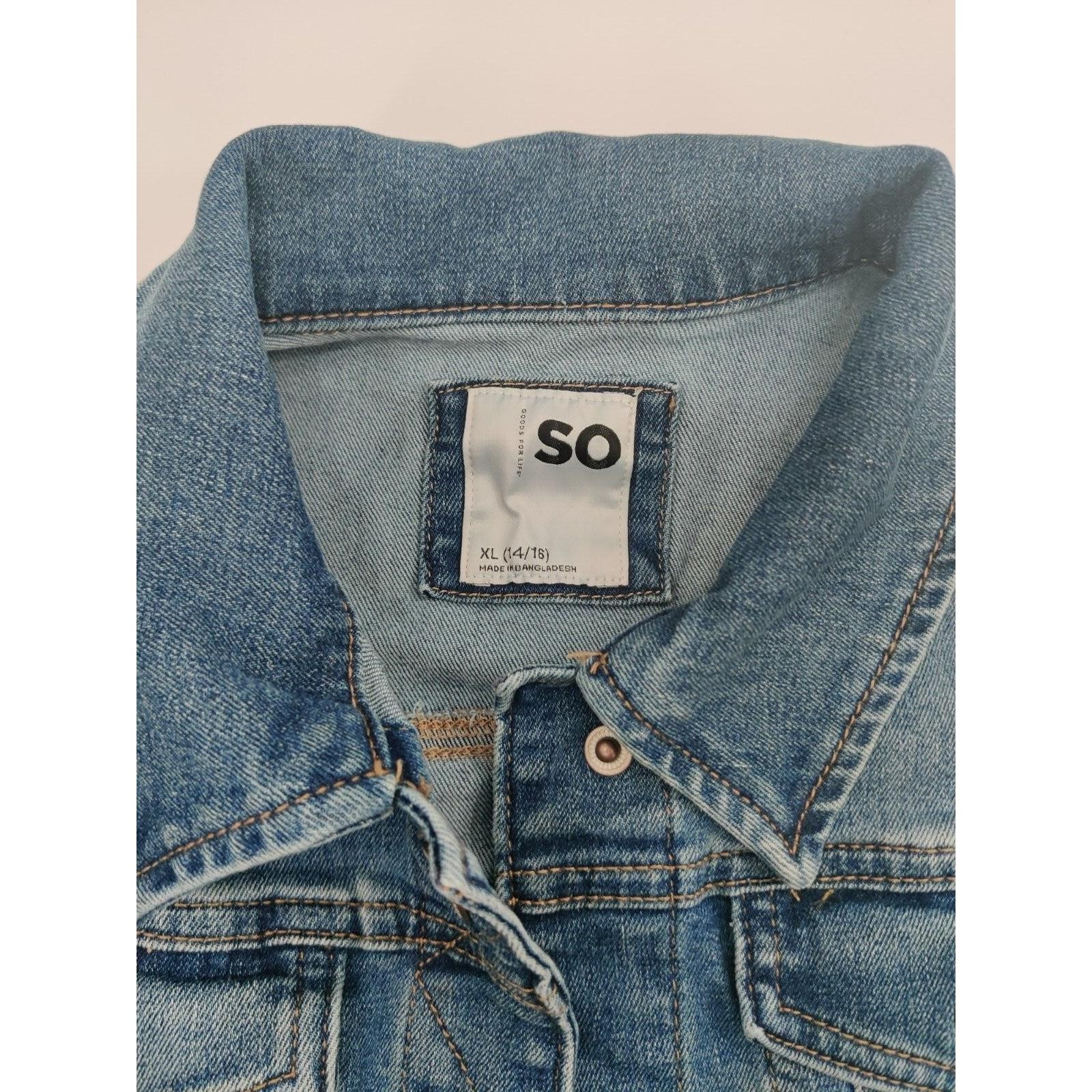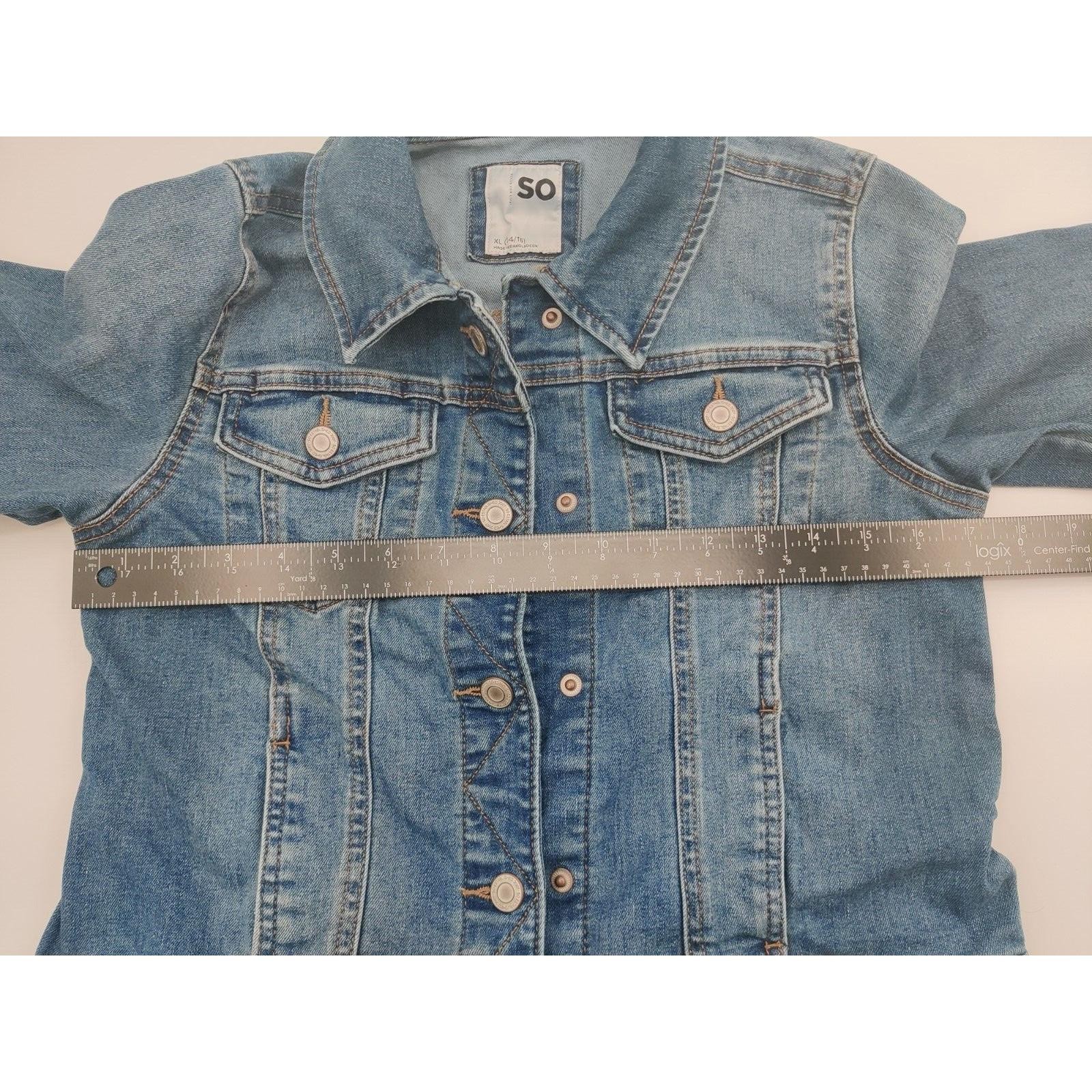 SO Denim Jacket Kids Size XL 14/16 Blue Classic Fit Button Front Everyday