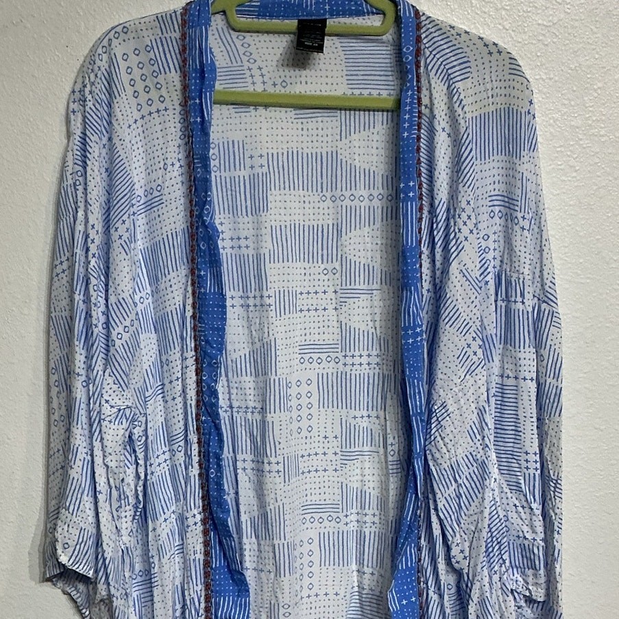 как выглядит Dolce Vita Blue Abstract Kimono Tie Front Swim Coverup Sz XS фото