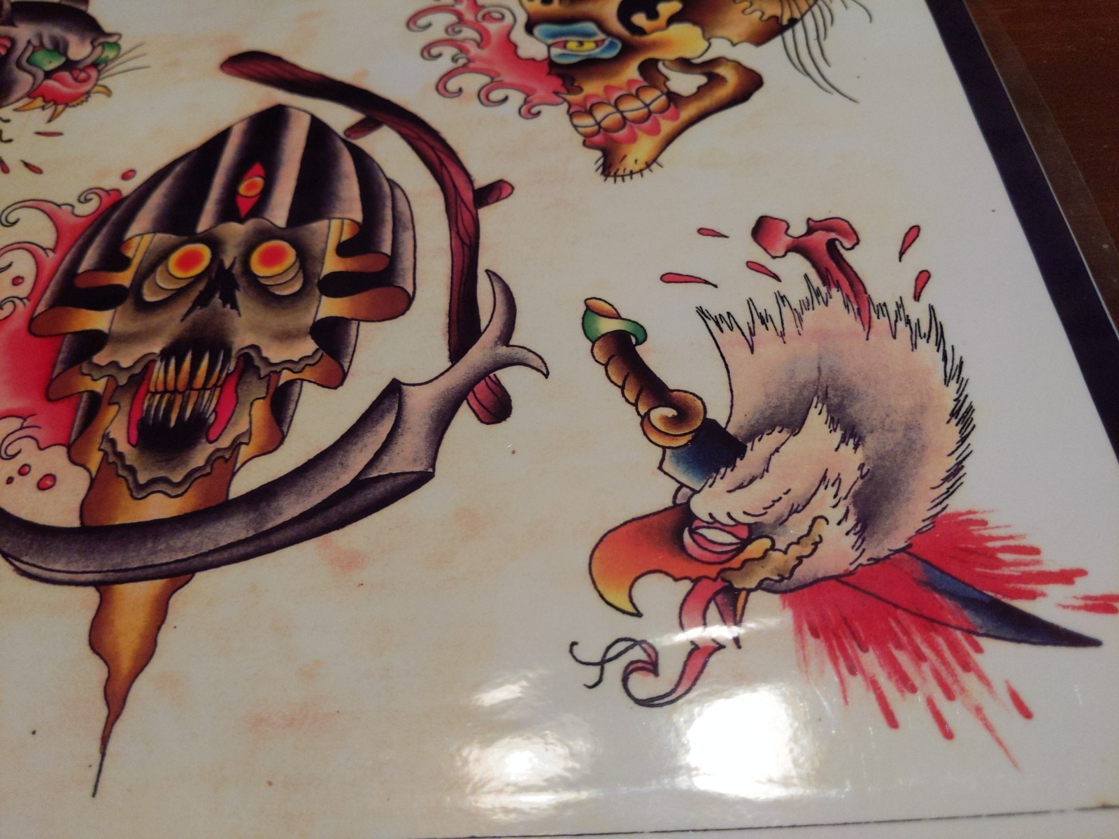 Vintage 90s Y2K Tattoo Flash Print Traditional Skulls Eagle Panther