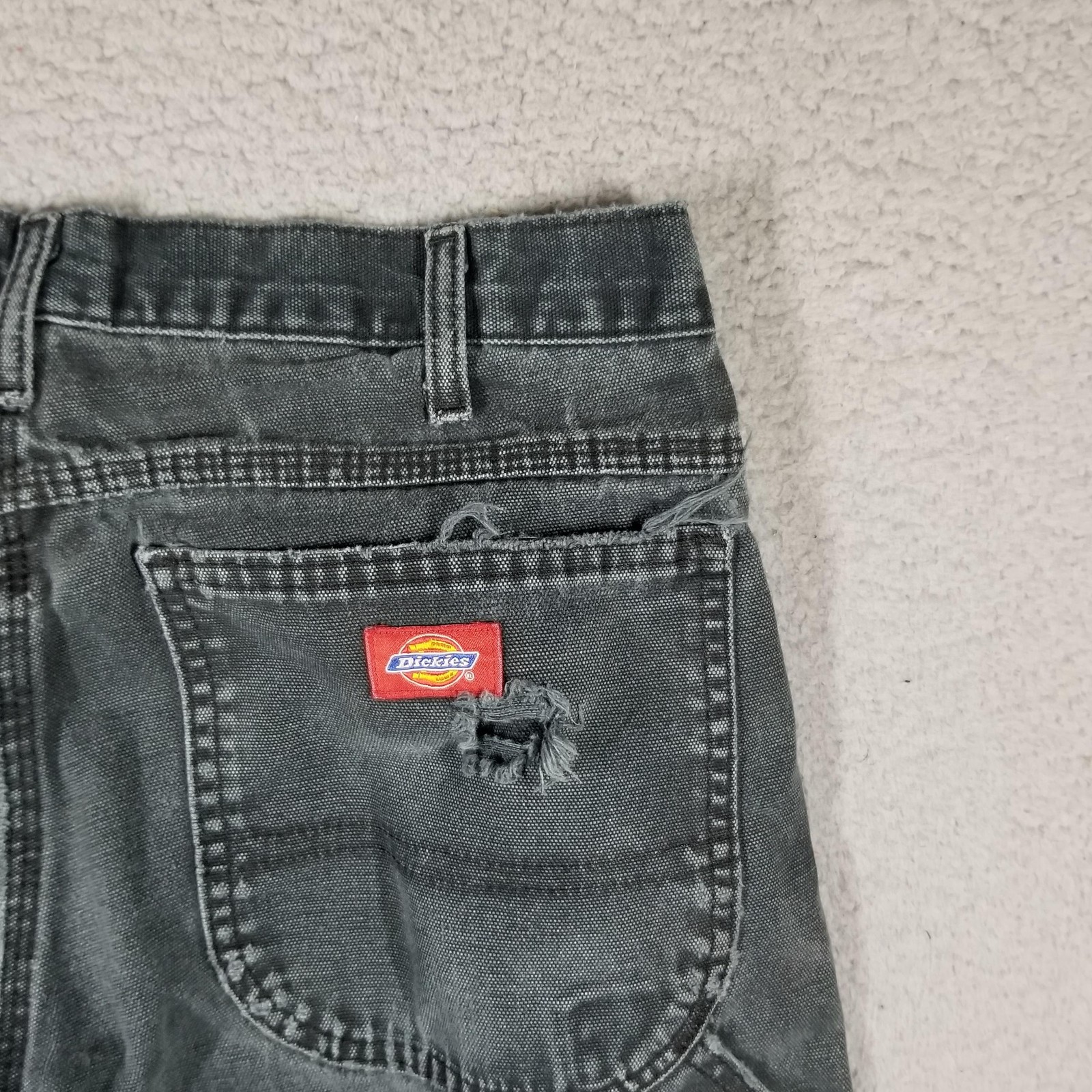 как выглядит Dickies Jeans Men 32x25 Black Custom Baggy Upcycle Double Knee Two Tone Distress фото