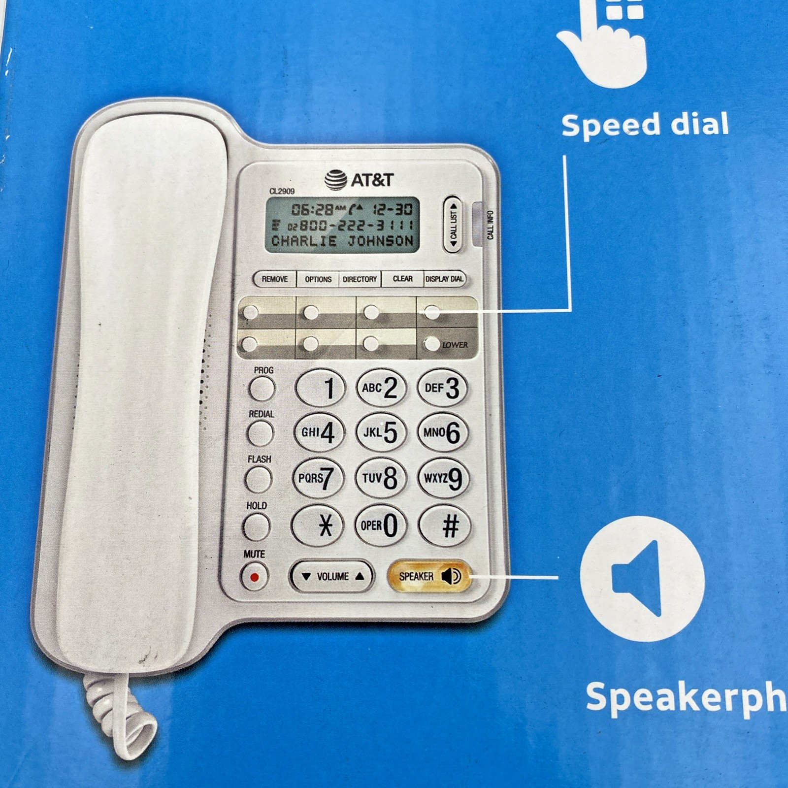 AT T Corded Phone with Speakerphone and Caller ID/Call Waiting CL2909 White