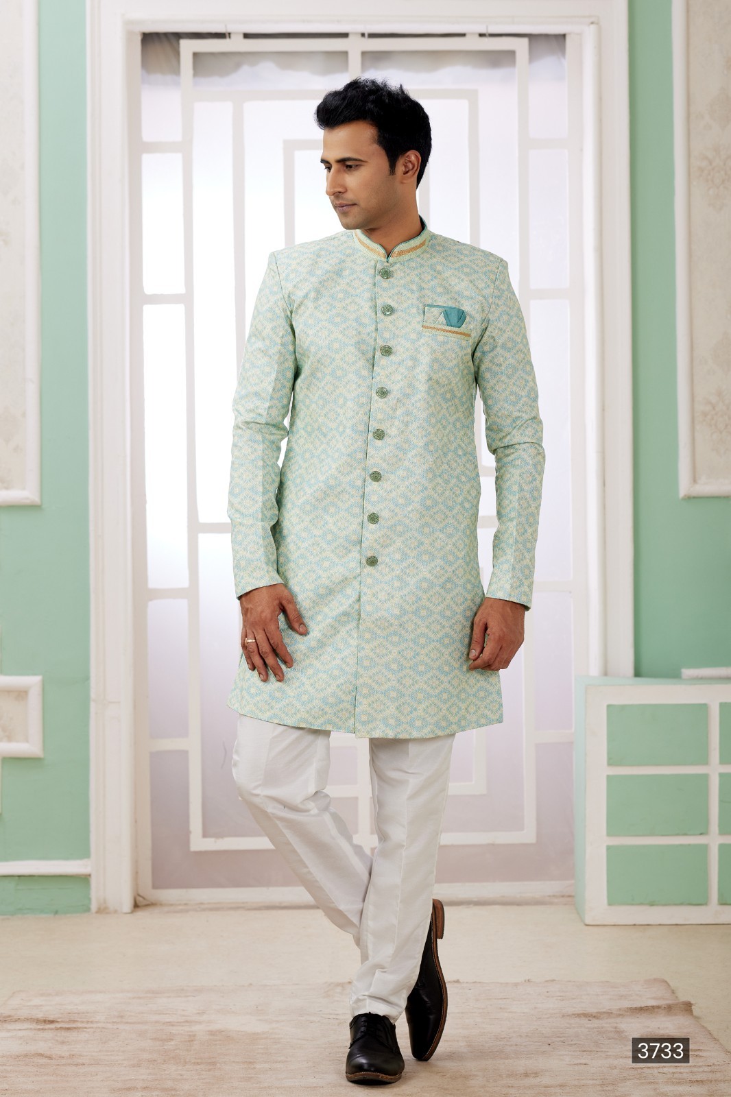 как выглядит Indian Mens Designer Wedding Wear Traditional Bollywood Wear Semi Indo Western фото