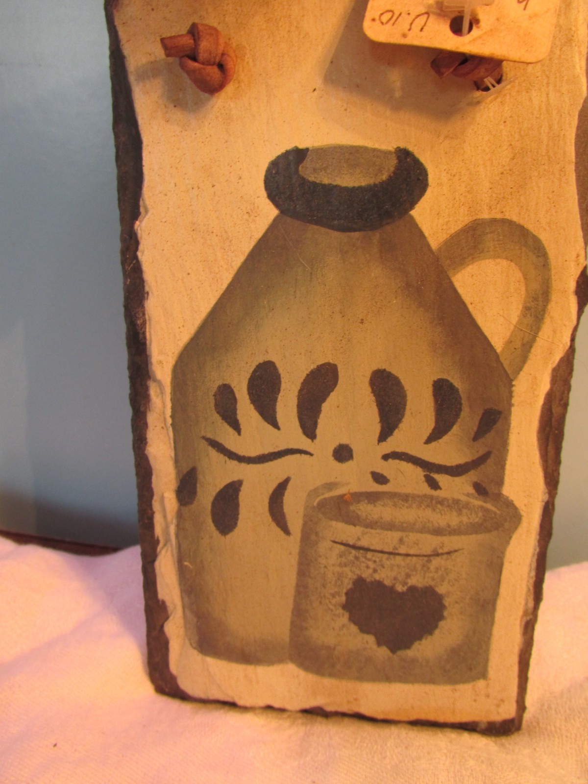 как выглядит Vintage SLATE HANDPAINTED CROCK HANGING PICTURE 4X7" MADE IN THE USA фото