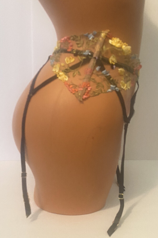 Victoria's Secret DREAM ANGELS Embroidered Floral M Panty M/L Garter Belt NEW
