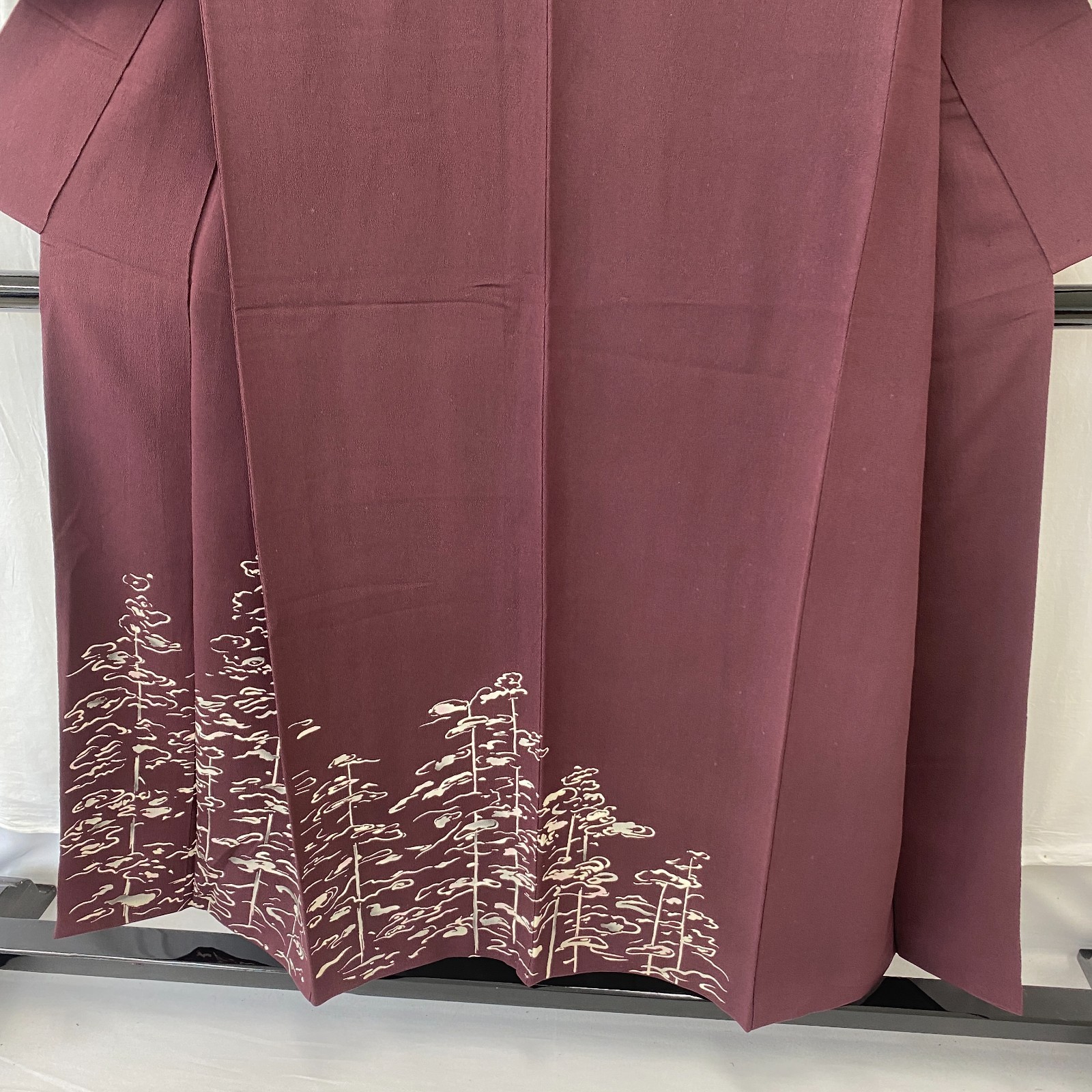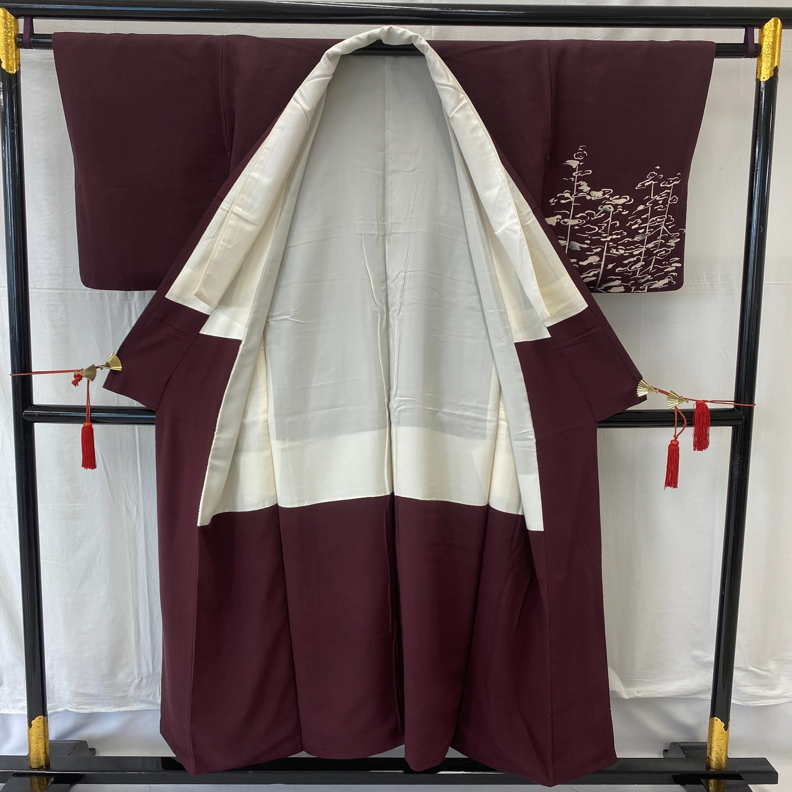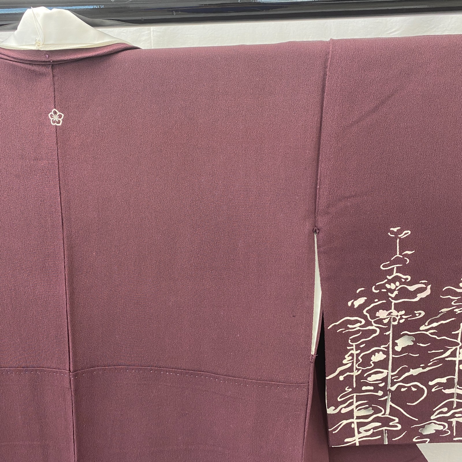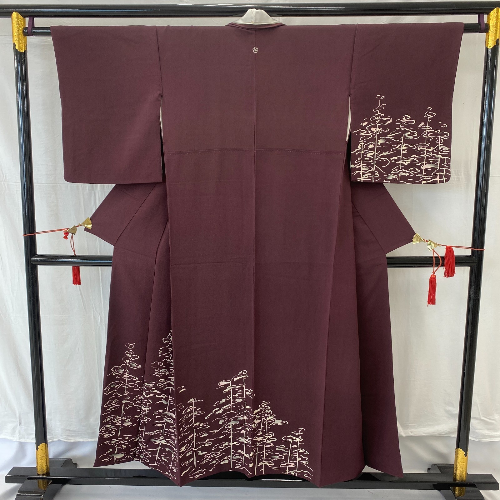 Japanese Vintage Kimono Silk Brown Tukesage Family Crest Traditional Length59in
