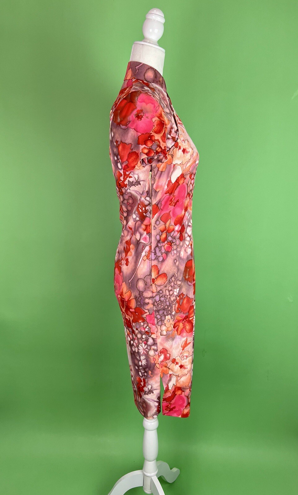 Vintage Pink Red Watercolor Floral Cheongsam Dress Pink Floral Qipao - Size XS/S