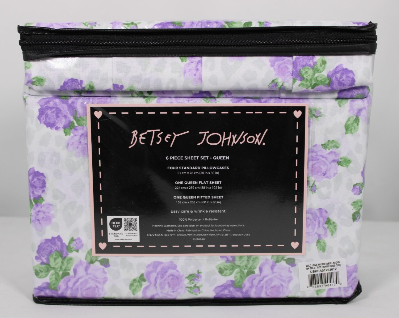 как выглядит New Betsey Johnson Purple Wild Love Queen 6 Piece Sheet Set Bonus Shams фото