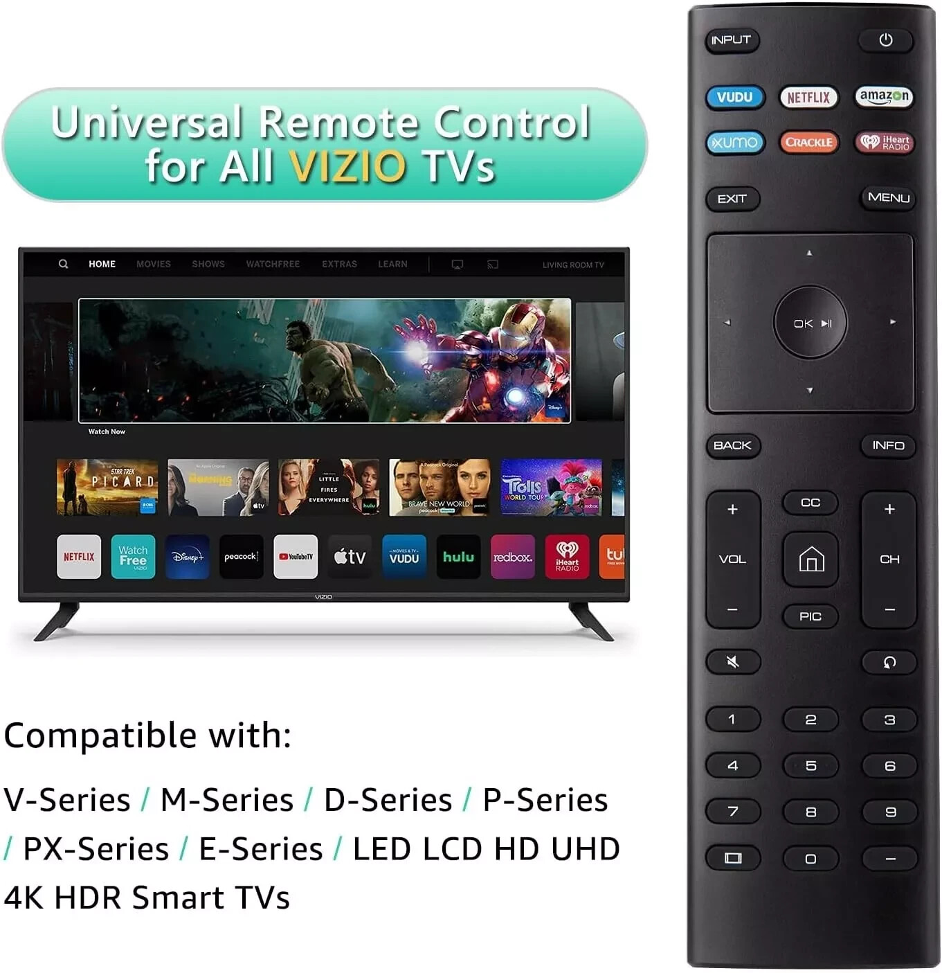 Особенности: XRT136, 6 Hotkeys: VUDU, Netflix,amazon, Xumo,Crackle, Wireless
