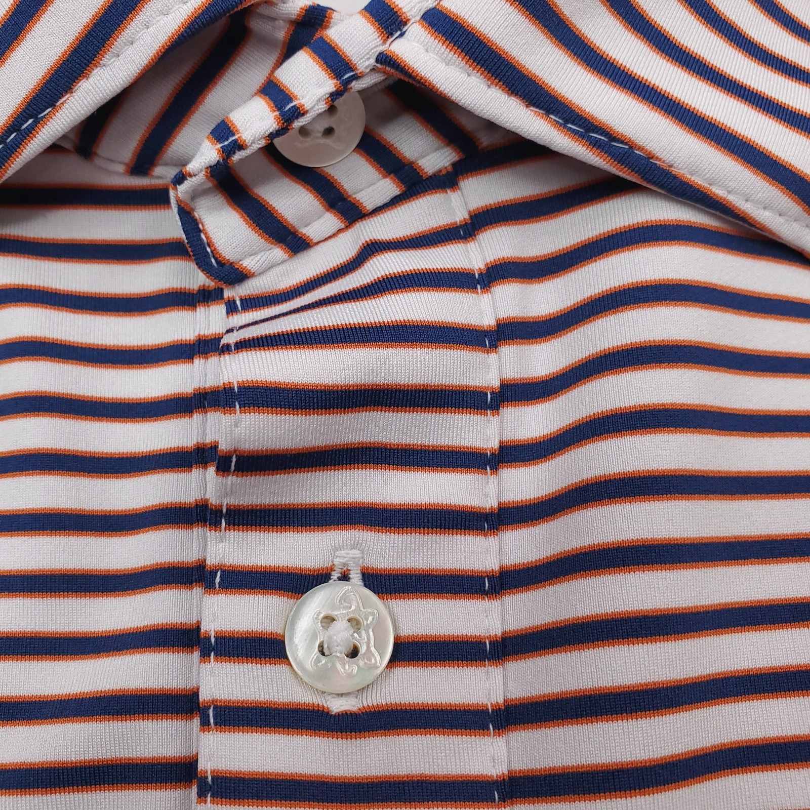 Turtleson Polo Shirt Mens Large White Blue Striped Performance Golf Stretch