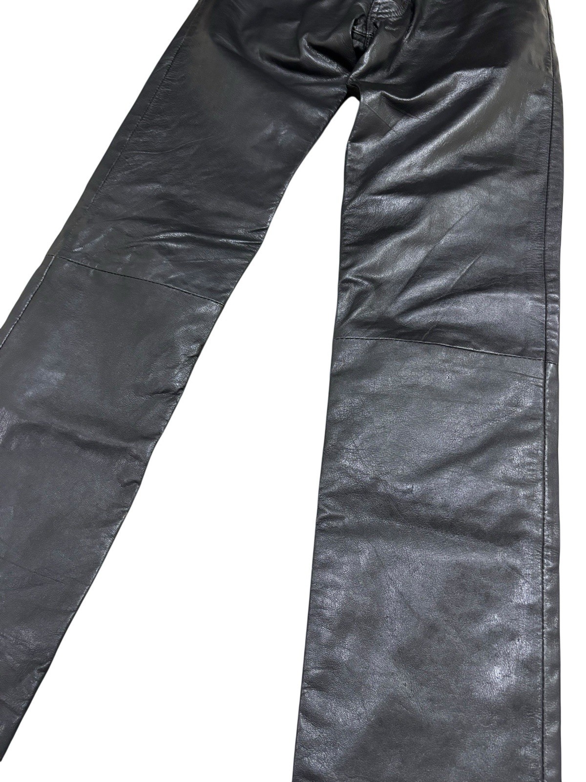 как выглядит WILSON LEATHER Y2K PELLE STUDIO MID RISE STRAIGHT LEG LEATHER BLACK PANTS SIZE 4 фото