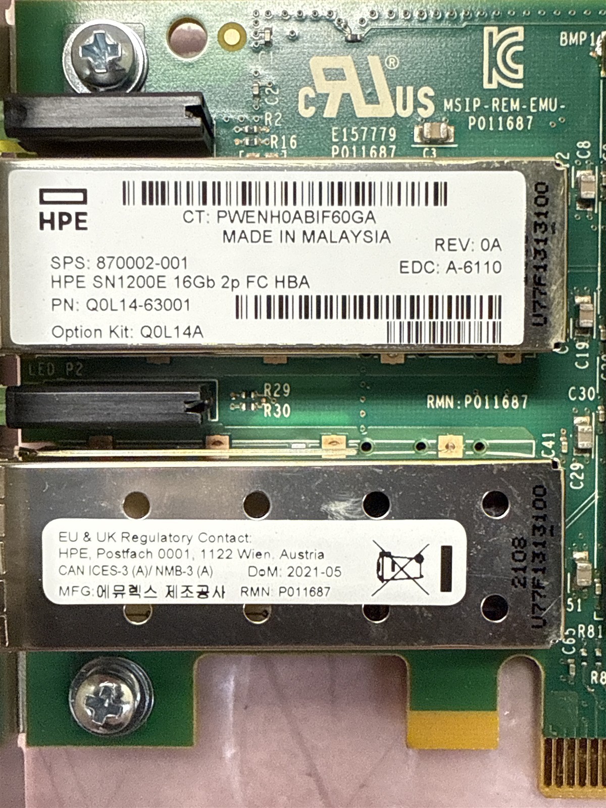 HP STOREFABRIC SN1200E 16GB DUAL-PORT FIBRE CHANNEL HBA 870002-001-HIGH PROFILE