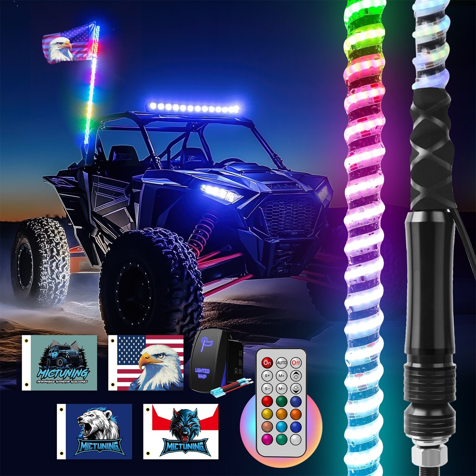 3FT/4FT COB LED Whip Lights RGB Chasing Spiral Antenna Remote for Can-Am ATV UTV