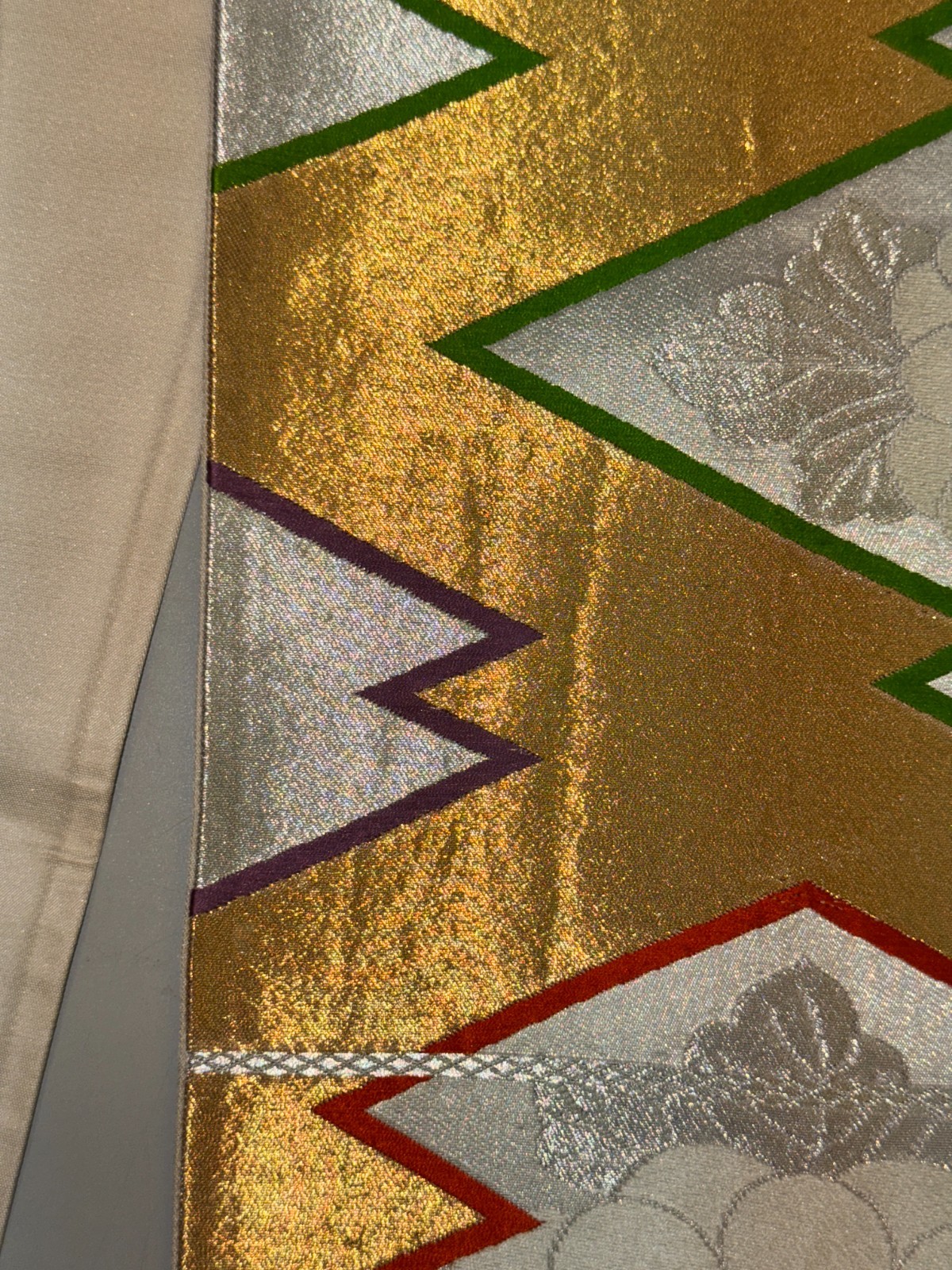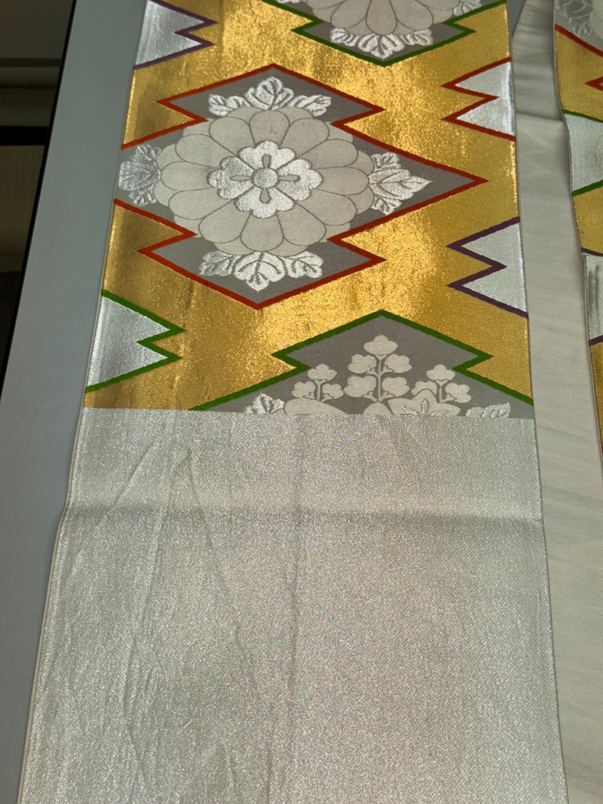как выглядит Japanese Vintage Kimono Fukuro Obi Silk White Traditional Authentic 165x 12 in фото