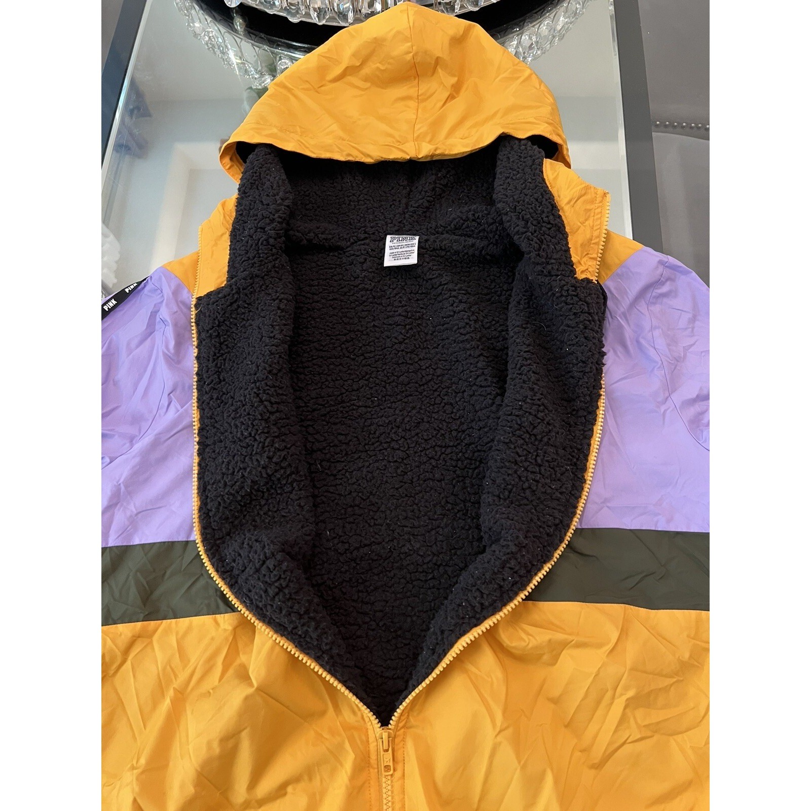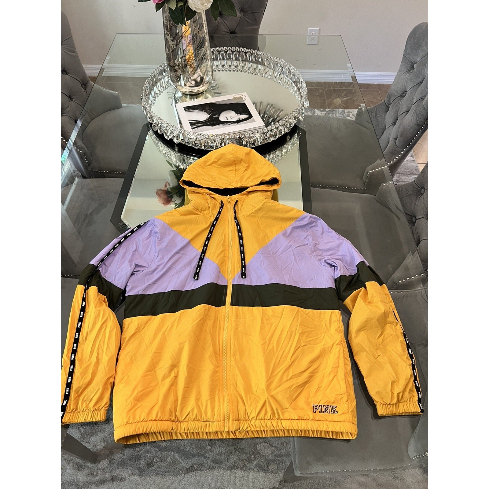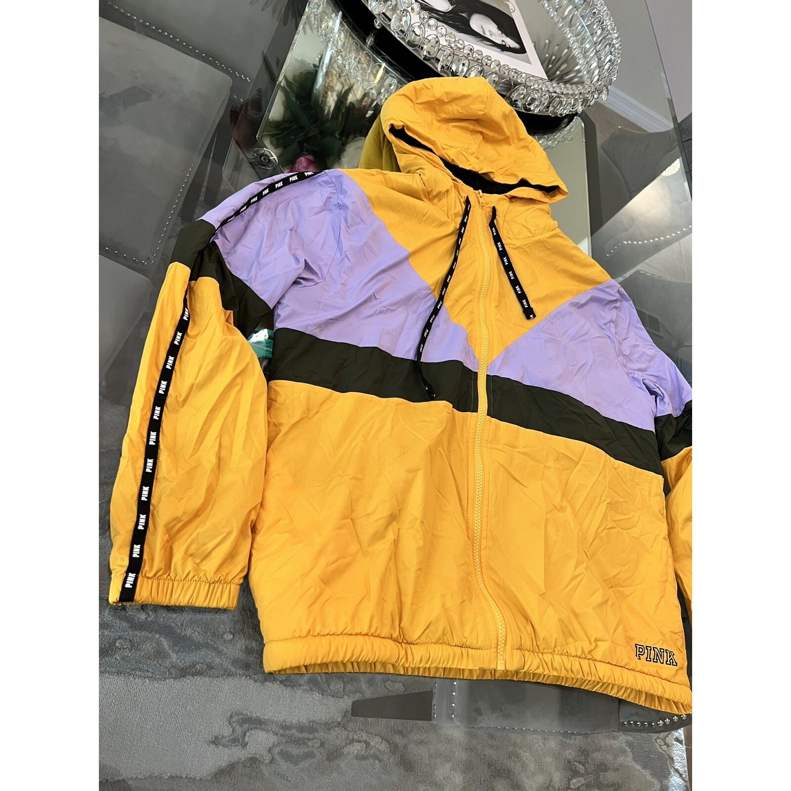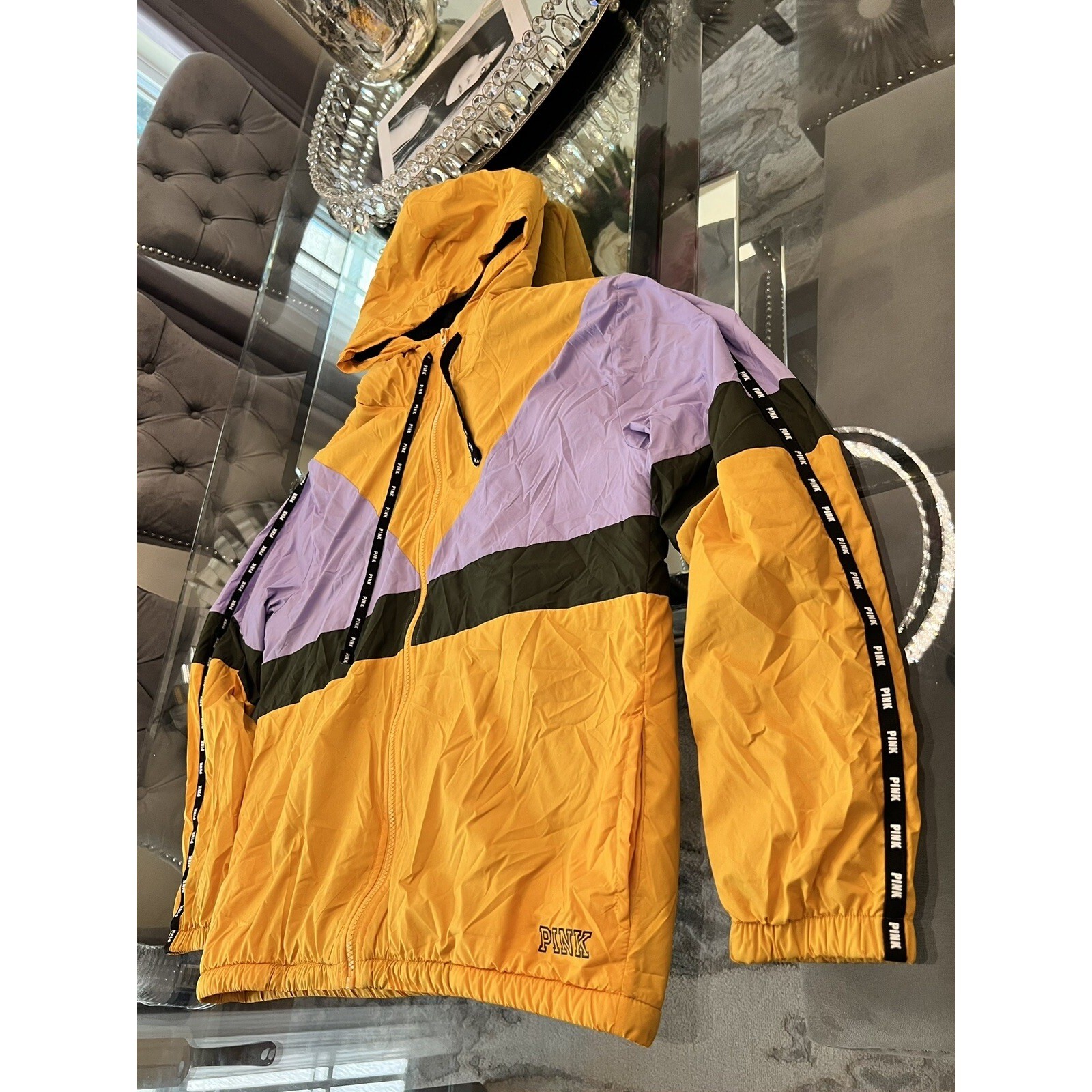 PINK Victoria's Secret Windbreaker Jacket Hooded Full Zip Colorblock Trendy XS