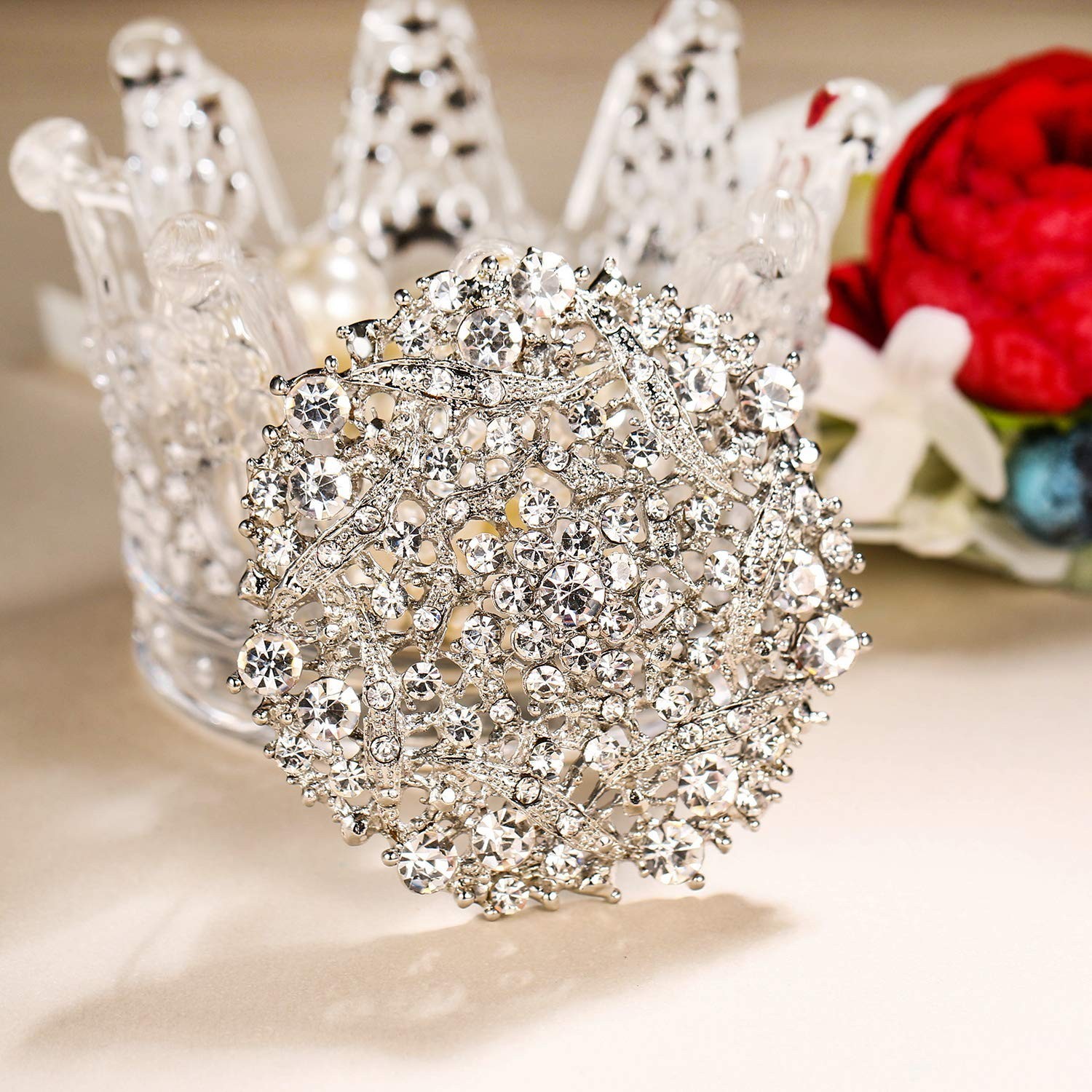 EVER FAITH Women's Elegant Wedding Corsage Clear Crystal Hollow Round Floral ...