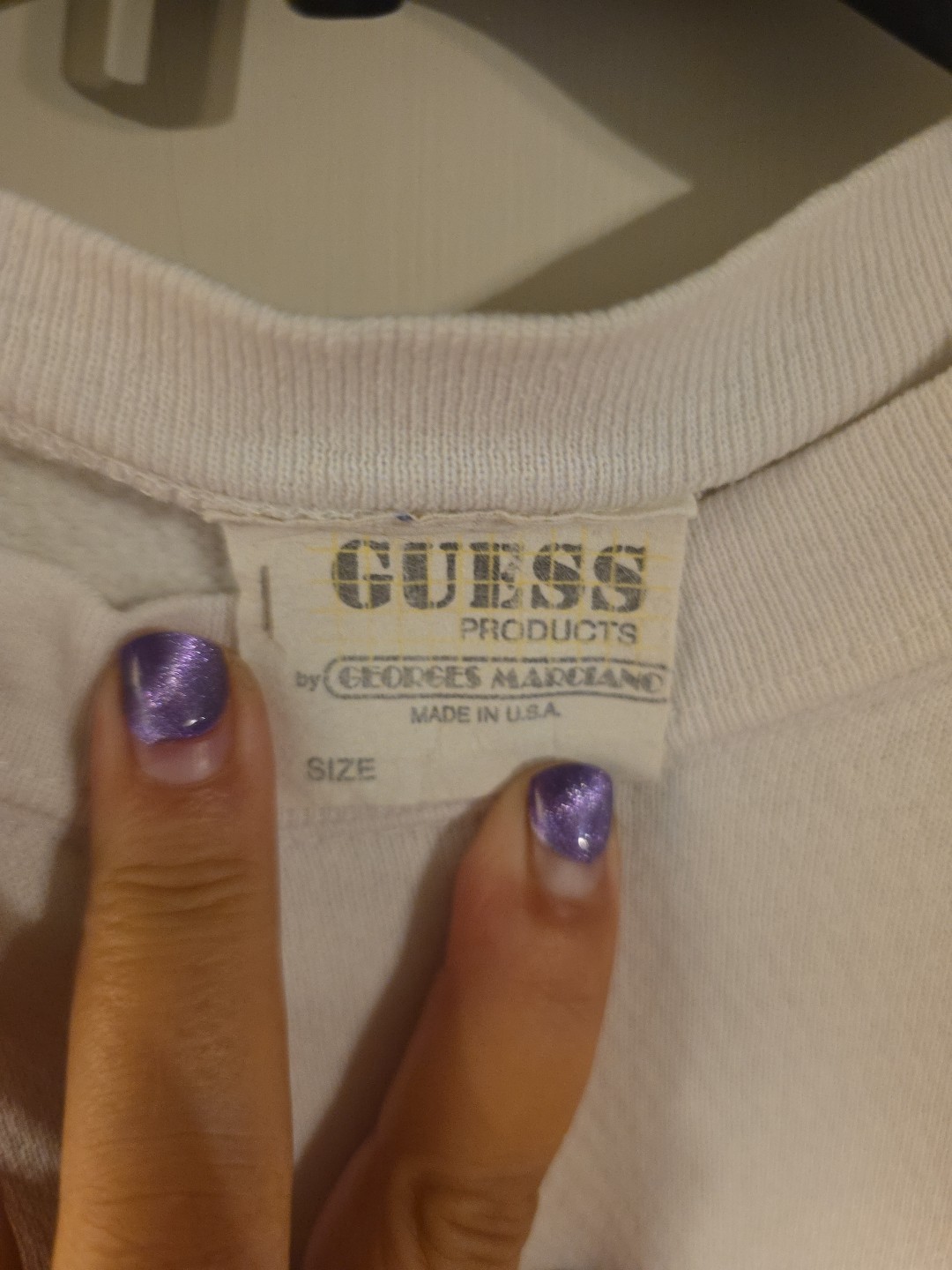 как выглядит Vtg Guess Sweatshirt Womens Size L Baggy White 1987 Crewneck USA Retro фото