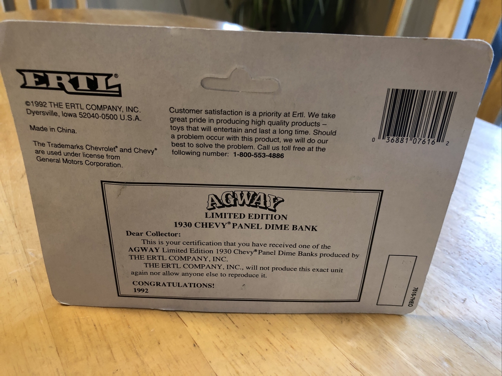 как выглядит Vintage 1992 Ertl Dime Bank Agway 1930 Chevy Black Panel Truck - New Sealed фото