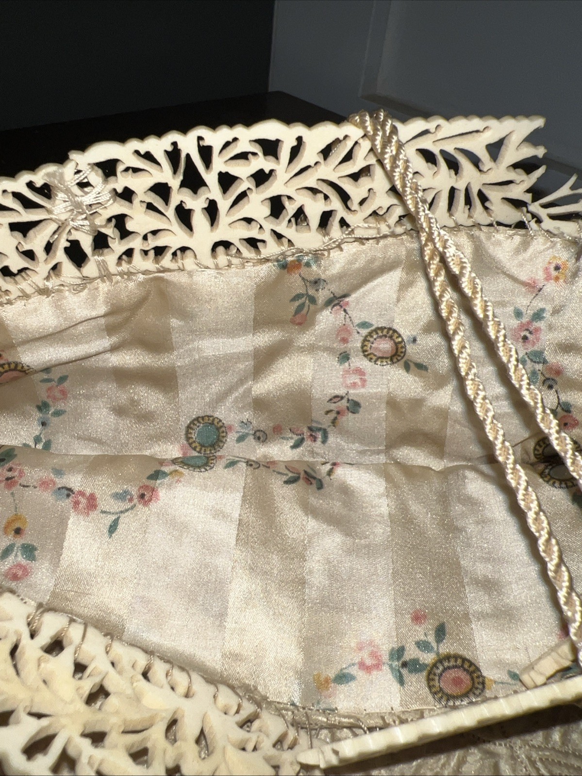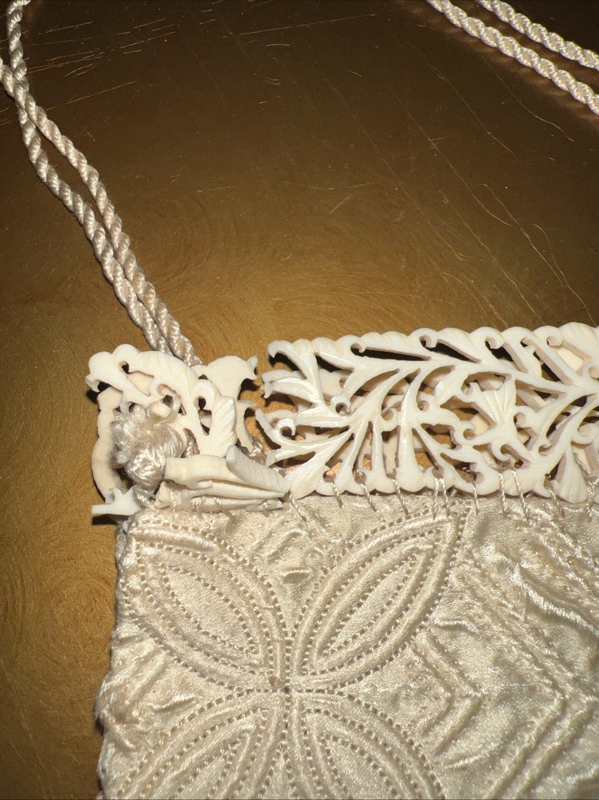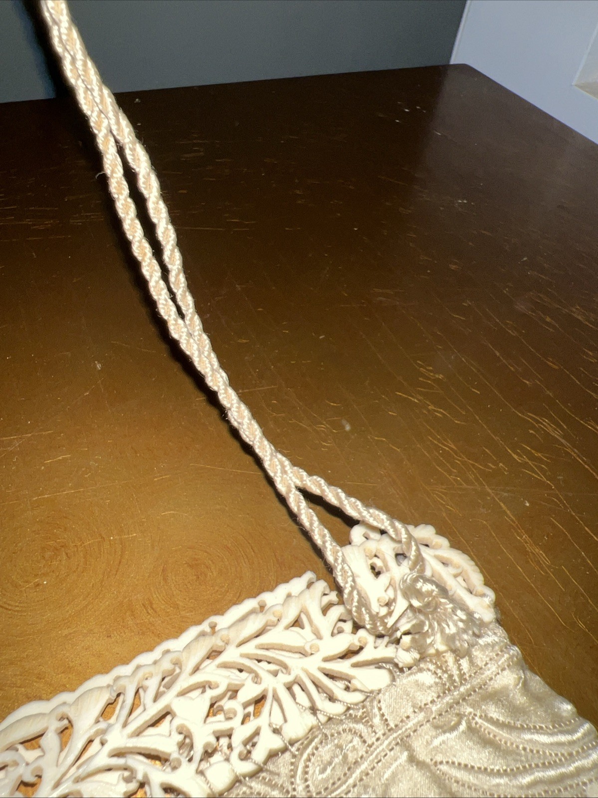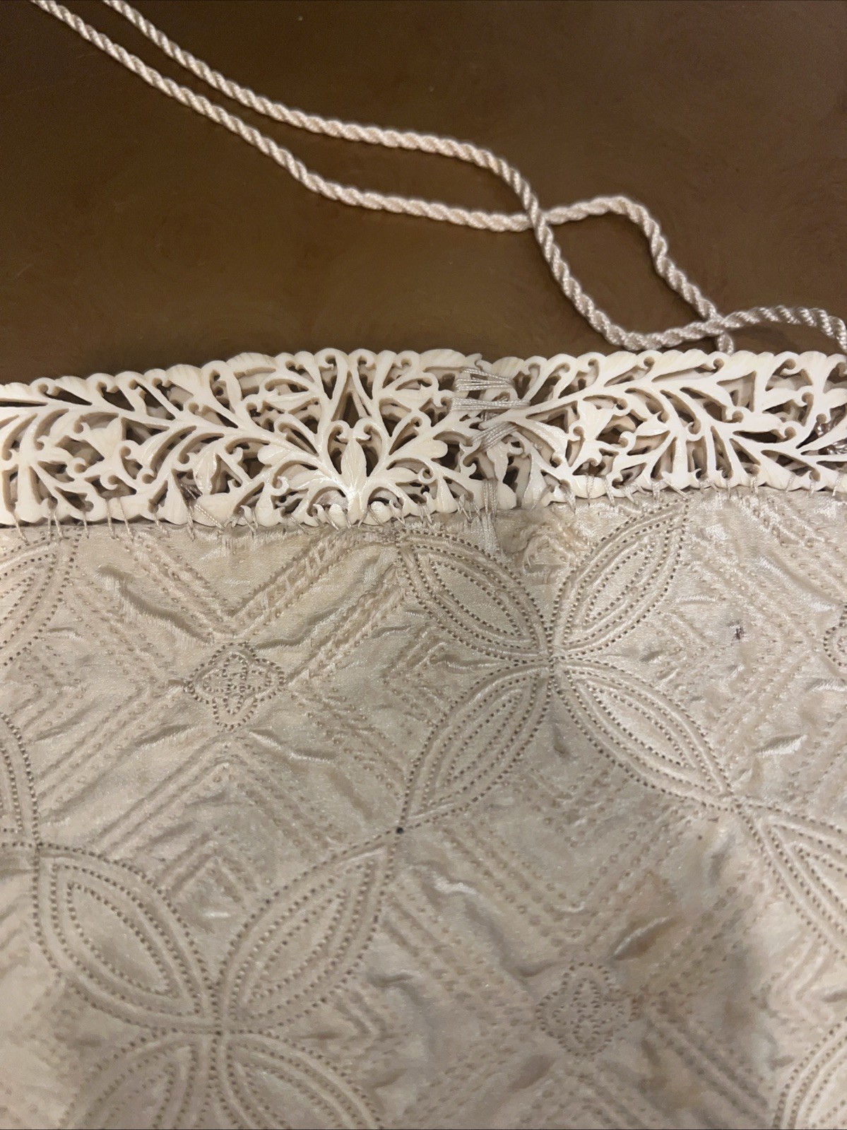 Handmade Vintage Ivory Bag Purse With Solid Lacing At Top READ