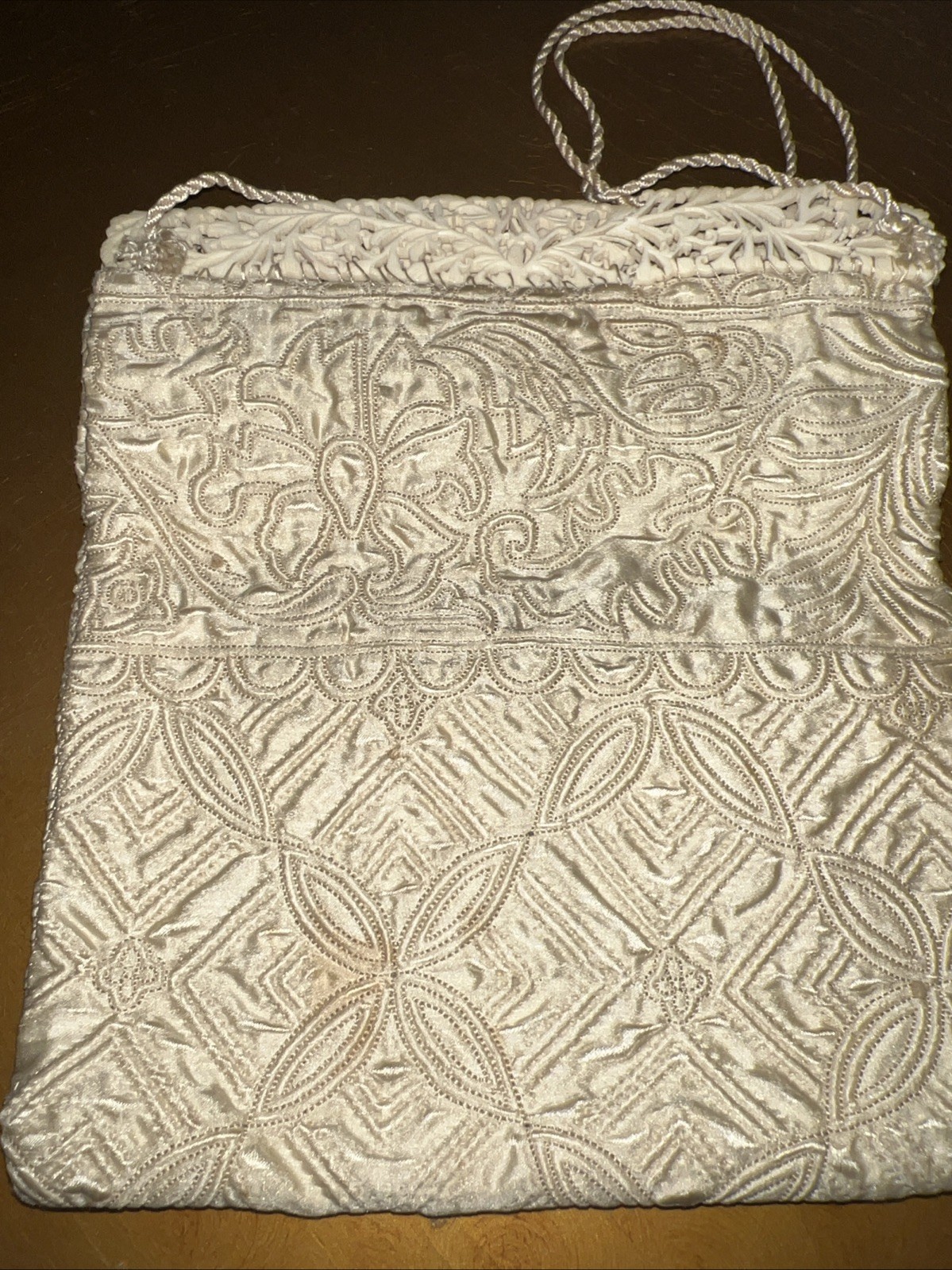 как выглядит Handmade Vintage Ivory Bag Purse With Solid Lacing At Top READ фото