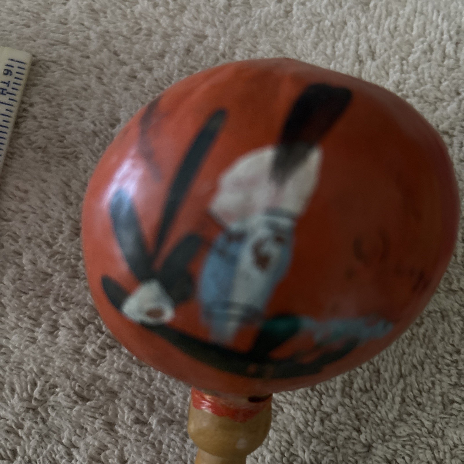 как выглядит Vintage FOLK ART Gourd MARACAS INSTRUMENTS, Wood Handles and HAND PAINT фото